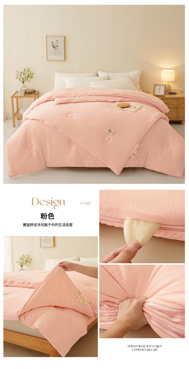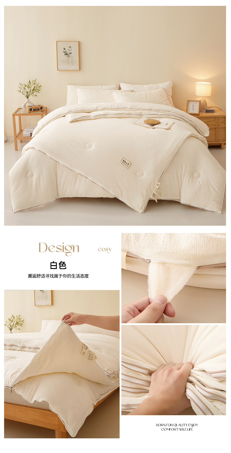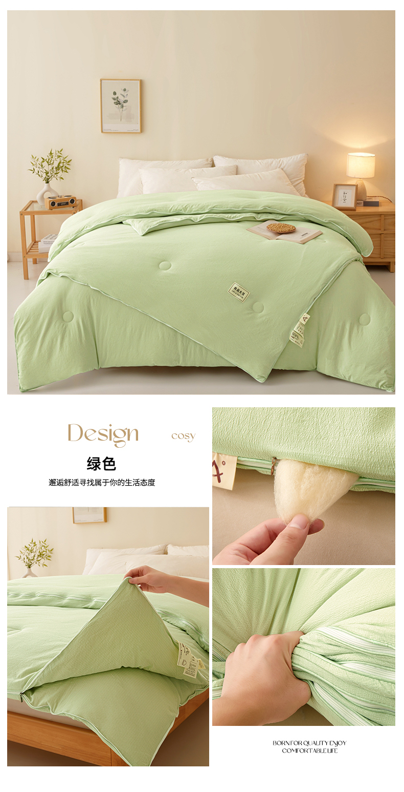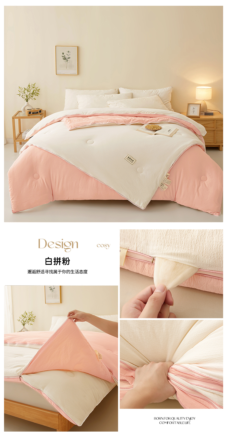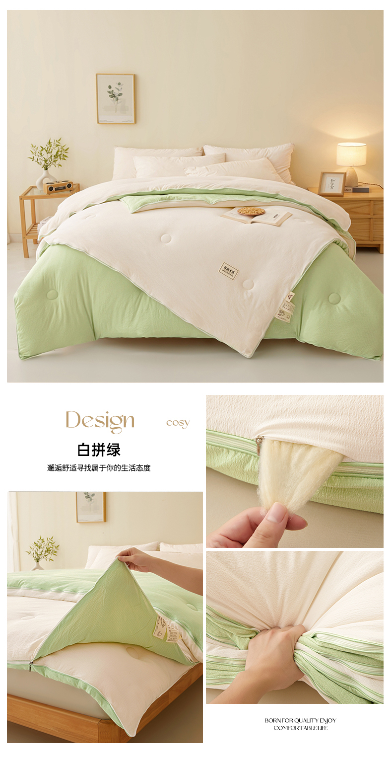 • 91家纺网 家纺一手货源 找家纺 (总)鸣创 2025新款木棉良品大豆被子母被冬被被子被芯,白拼粉,白拼绿,白色,粉色,灰色,绿色