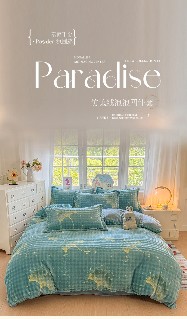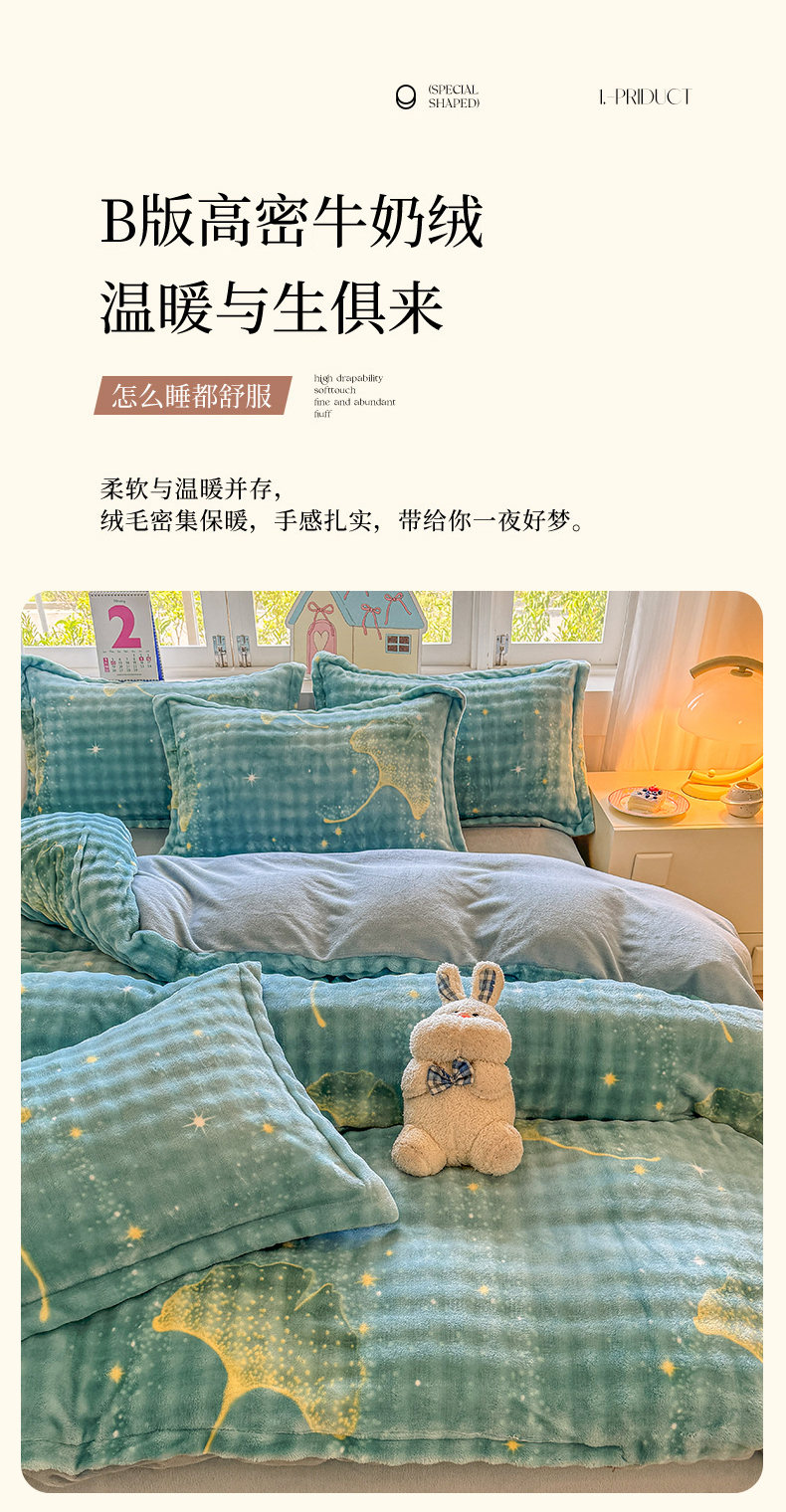 当前位置: 91家纺网 > 商品网购 > 床品套件 > 四件套 > 牛奶绒四件套 > 家贝爱 2025新款加厚牛奶绒泡泡兔毛绒四件套 泡泡绒-银杏叶