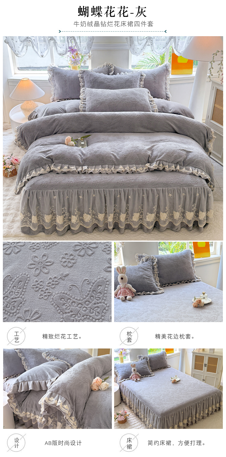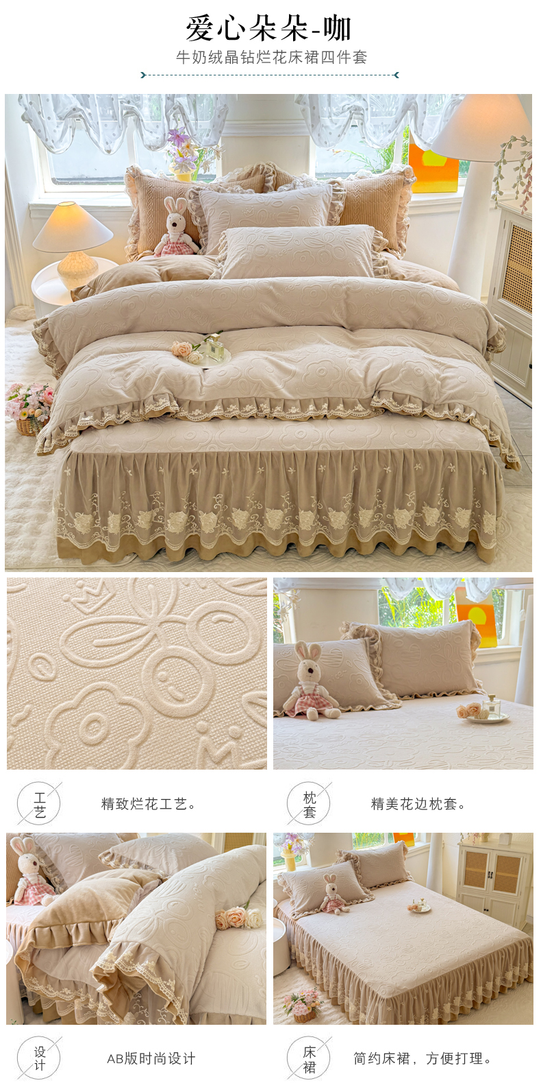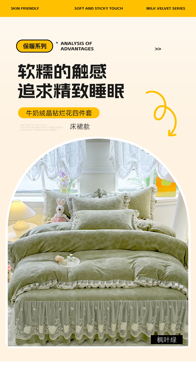 (总)美达家纺 2025新款牛奶绒雕花系列床裙四件套(可定制),床裙-枫叶-绿,床裙-爱心朵朵-咖,床裙-海浪涛涛-米白,床裙-蝴蝶花花-灰,床裙-丝丝如花-皮粉,床裙-丝丝如花-雾蓝