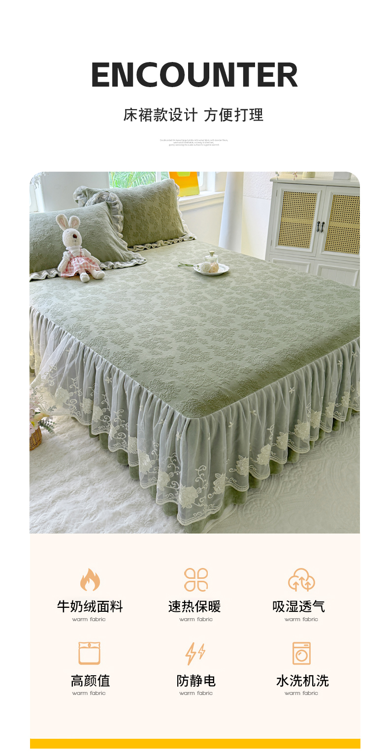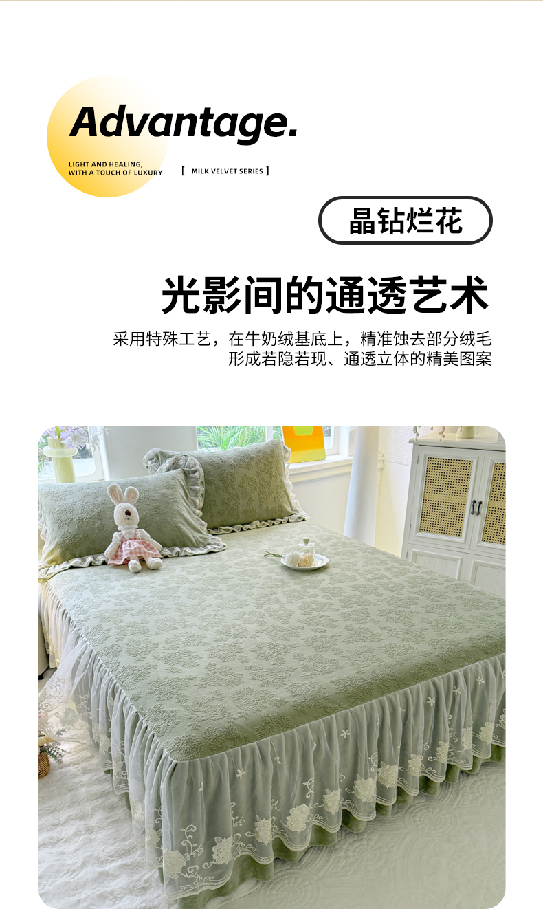 美达家纺 2025新款牛奶绒雕花系列单床裙 床裙-枫叶-绿