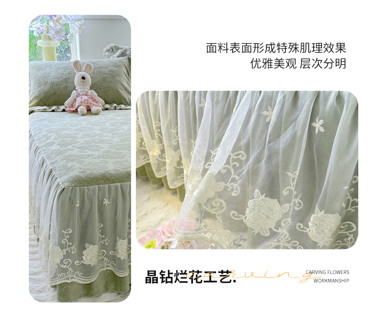 (总)美达家纺 2025新款牛奶绒雕花系列单床裙,床裙-爱心朵朵-咖,床裙-枫叶-绿,床裙-海浪涛涛-米白,床裙-蝴蝶花花-灰,床裙-丝丝如花-皮粉,床裙-丝丝如花-雾蓝