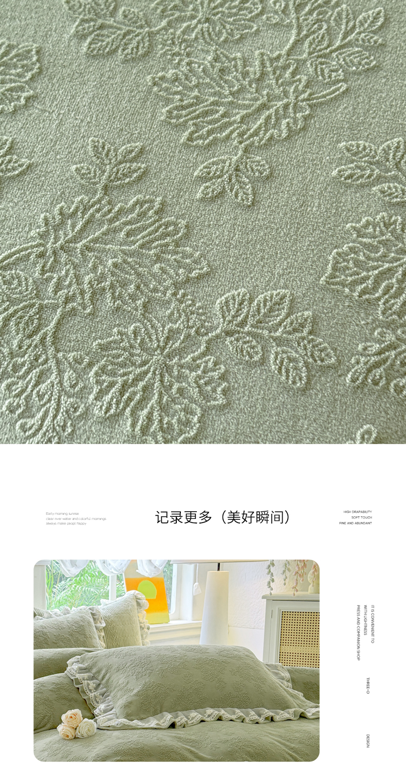 商品名称:美达家纺 2025新款牛奶绒雕花系列单床裙 床裙-枫叶-绿