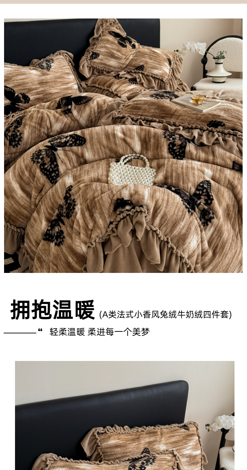 (总)米莱家纺 2025新款兔毛绒花边牛奶绒四件套,彩色圆点,繁花,粉黛,蝴蝶结,咖圆点,可爱兔,可爱熊,蔷薇