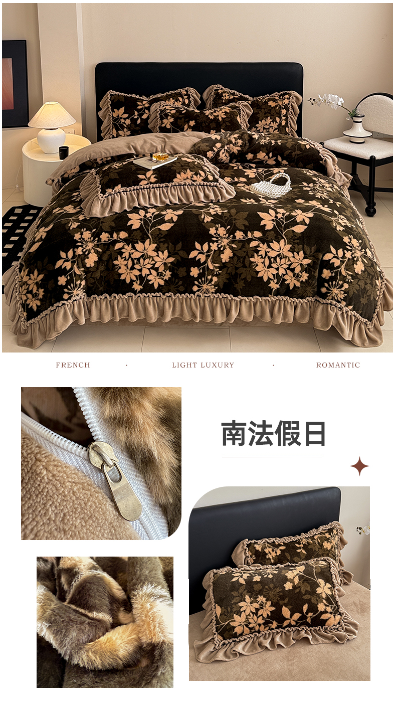 (总)米莱家纺 2025新款兔毛绒法式花边四件套,梦蝶,豹纹-灰,豹纹-咖,布拉格,春野,芳华,花颜,南法假日,欧若拉,倾城,赛琳,山茶