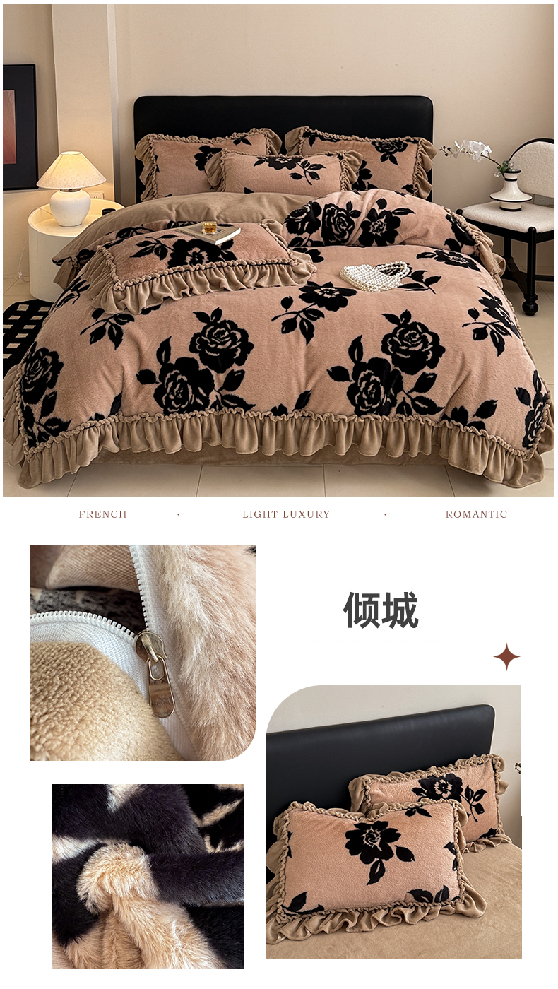 (总)米莱家纺 2023新款兔毛四件套 玫瑰花,玫瑰花-白加咖,玫瑰花-白加粉,玫瑰花-粉色,玫瑰花-灰色,玫瑰花-咖色,玫瑰花-绿色,玫瑰花-紫色
