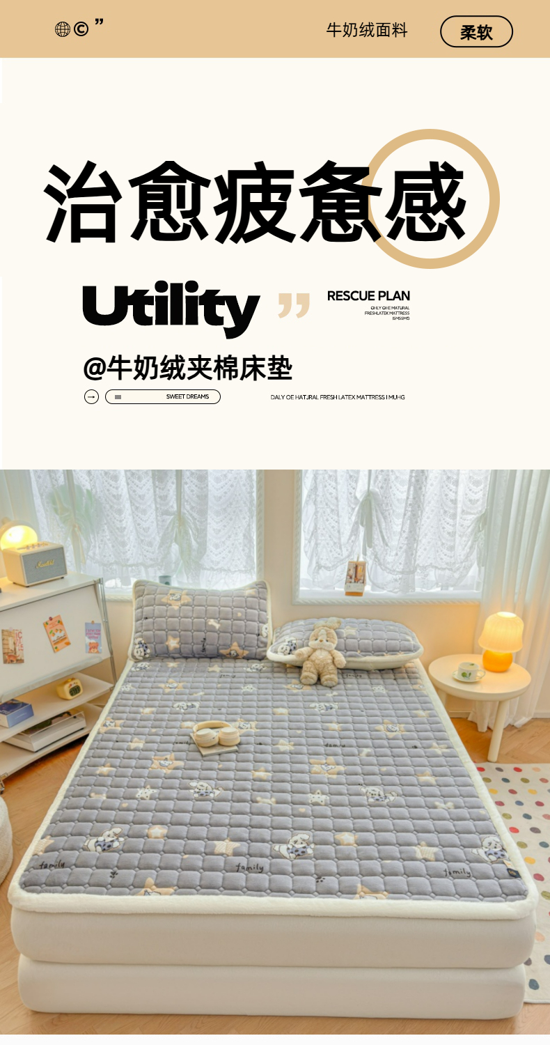 当前位置: 91家纺网 > 商品网购 > 床垫/床褥 > 普通床垫 > 爱屋及屋 2025新款牛奶绒印花床垫-大床款 星星小狗