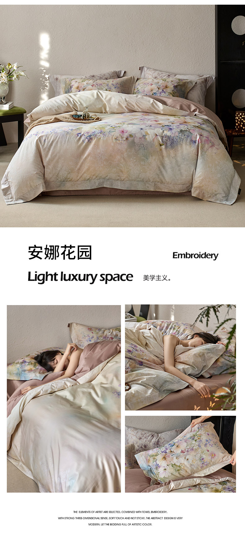 当前位置: 91家纺网 > 商品网购 > 床品套件 > 四件套 > 长绒棉四件套 > 轩和家居 2025新款70SA类轻奢长绒棉纯棉花四件套正品YKK拉链+精品做工 第一组 安娜花园