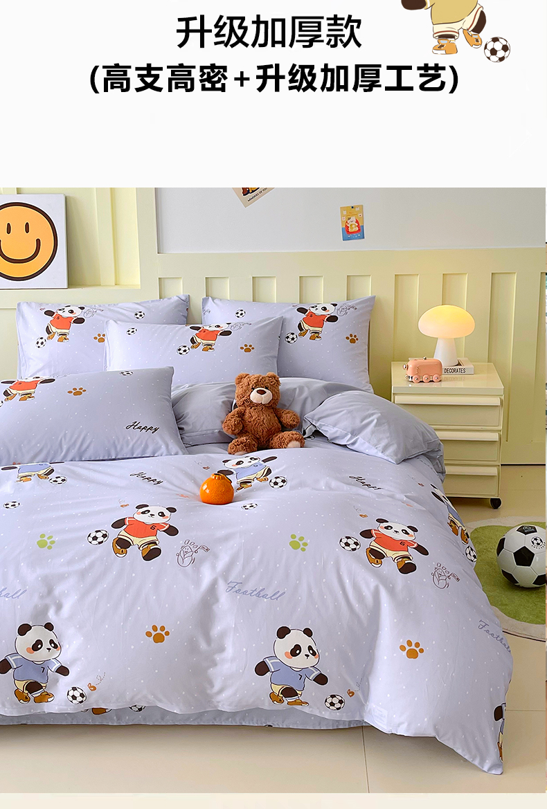 当前位置: 91家纺网 > 商品网购 > 床品套件 > 四件套 > 全棉普通四件套 > 金鑫汇家纺 2025新款A类全棉纯棉印花大床图四件套 足球争霸赛-灰