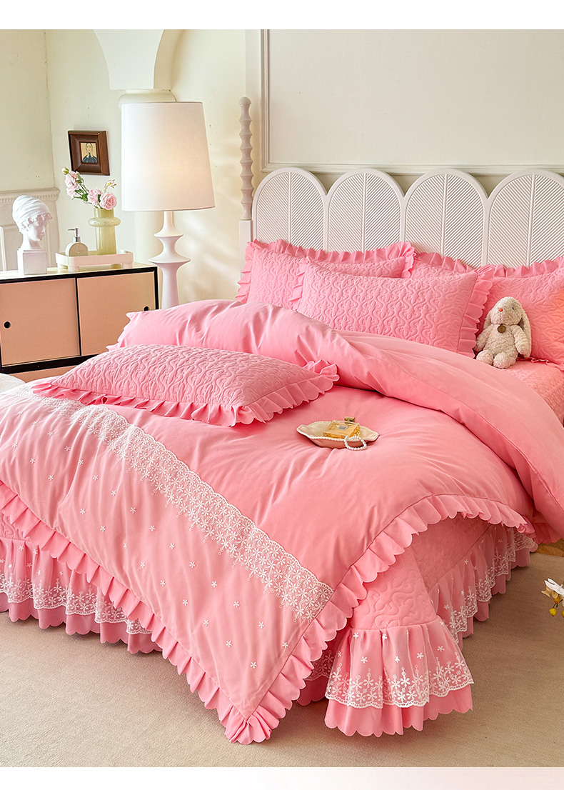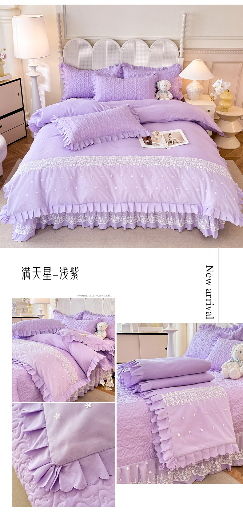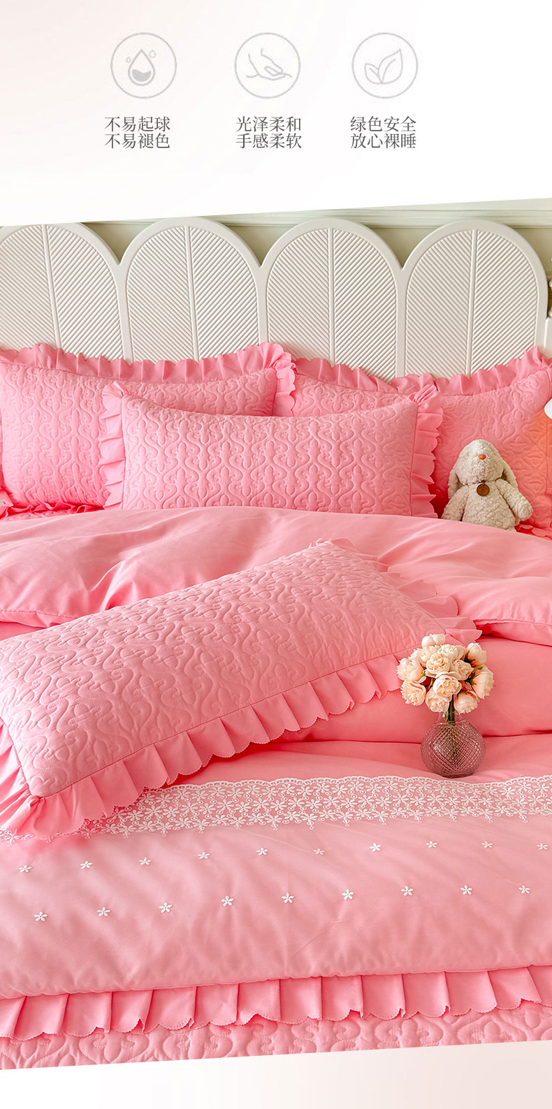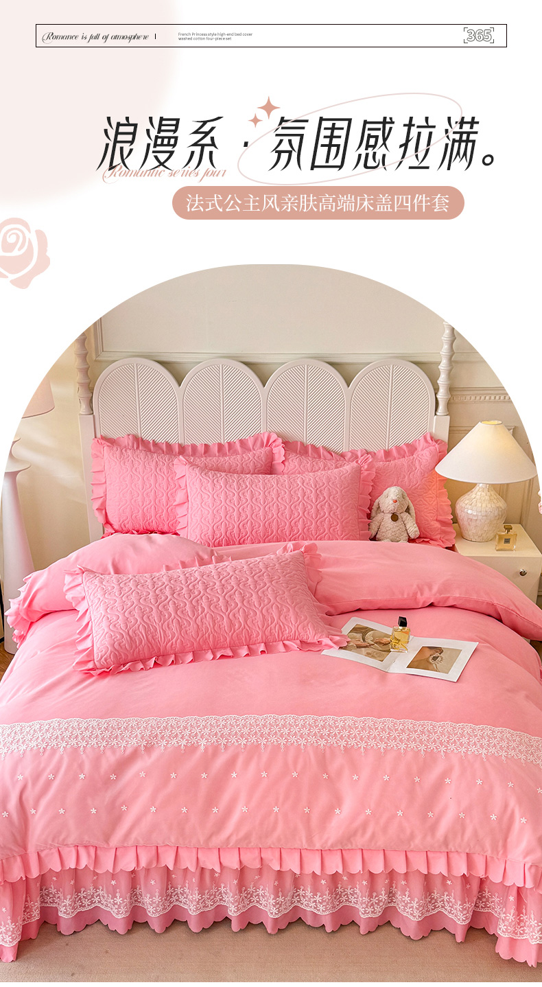 当前位置: 91家纺网 > 商品网购 > 床品套件 > 四件套 > 其它四件套 > 后庭寝室 2025新款法式公主风亲肤床盖四件套-满天星系列 满天星-粉玉