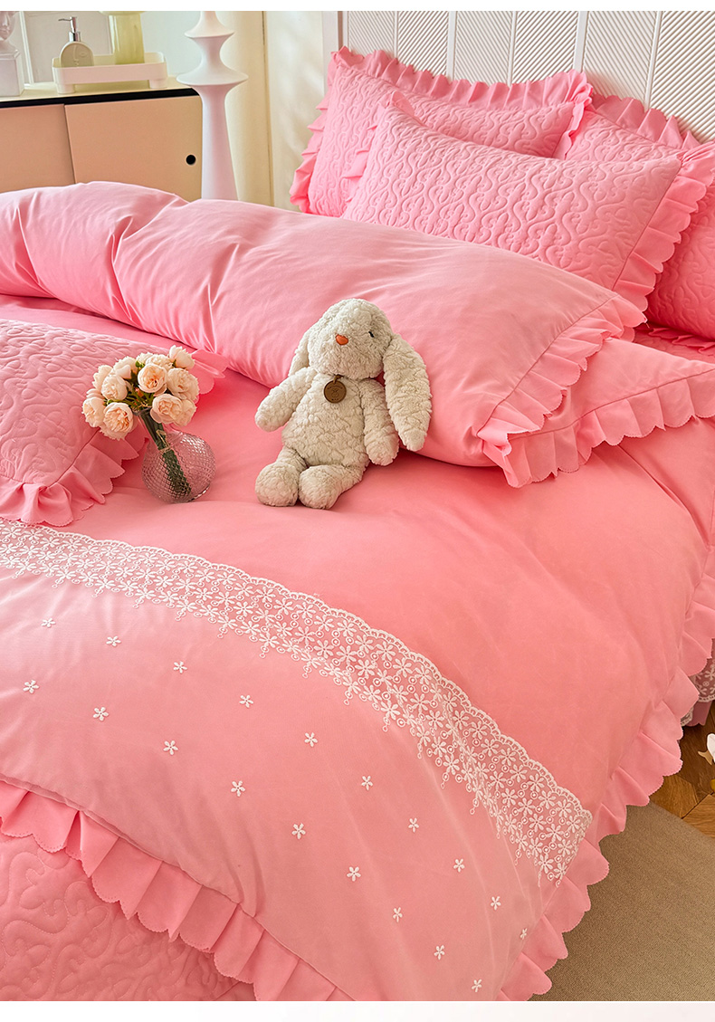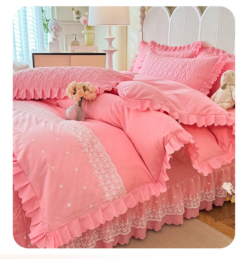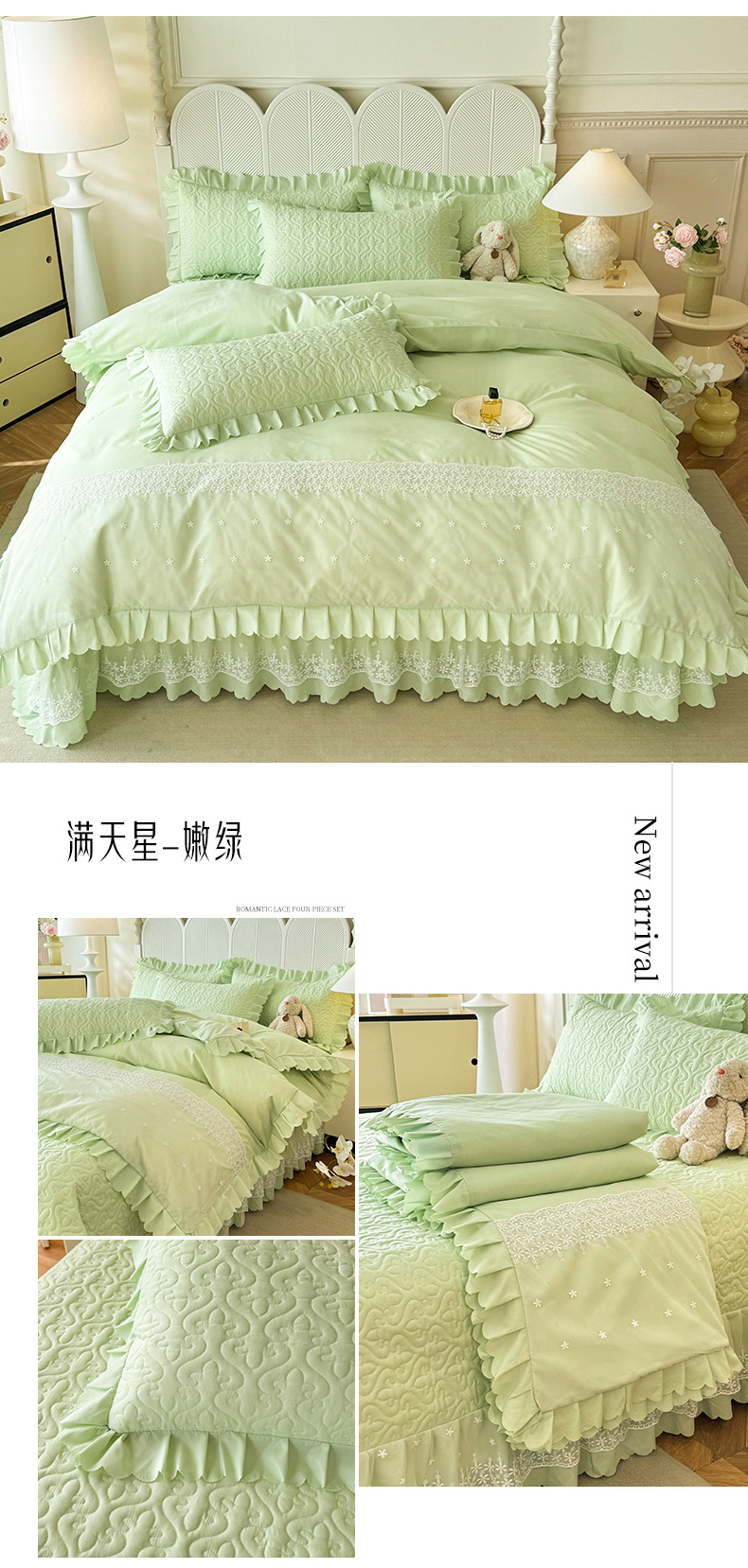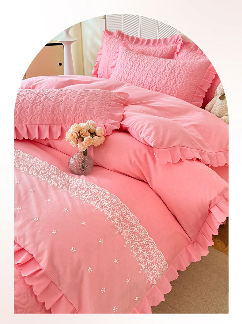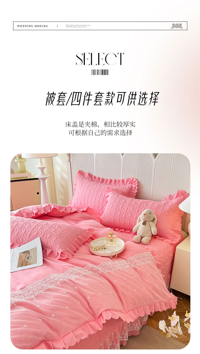 当前位置: 91家纺网 > 商品网购 > 床品套件 > 四件套 > 其它四件套 > 后庭寝室 2025新款法式公主风亲肤床盖四件套-满天星系列 满天星-粉玉