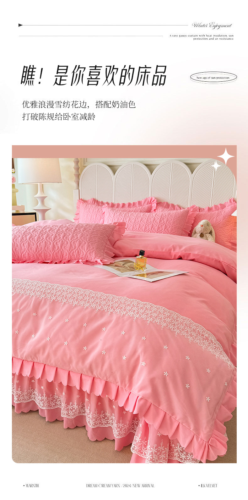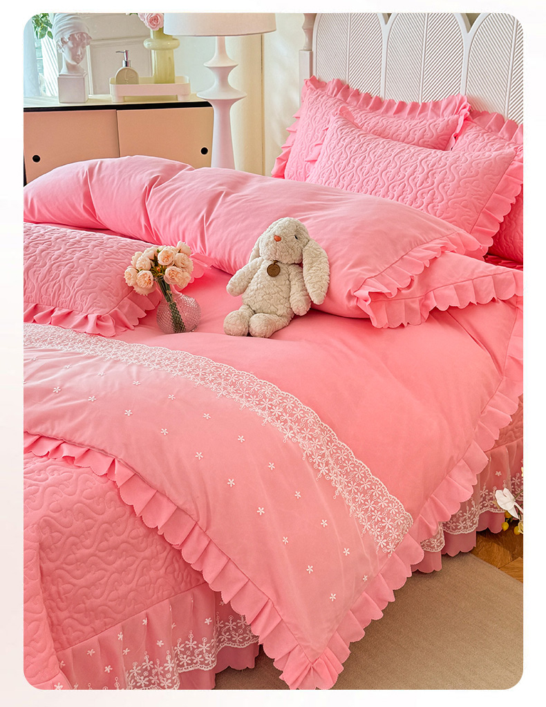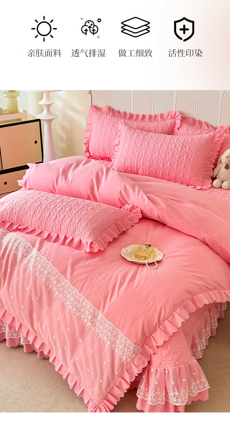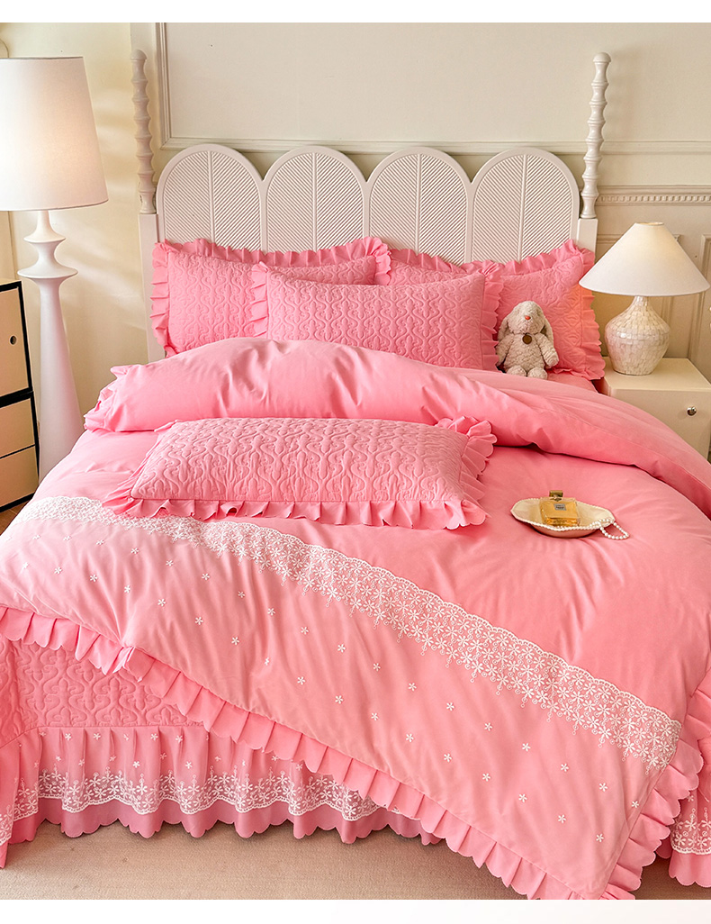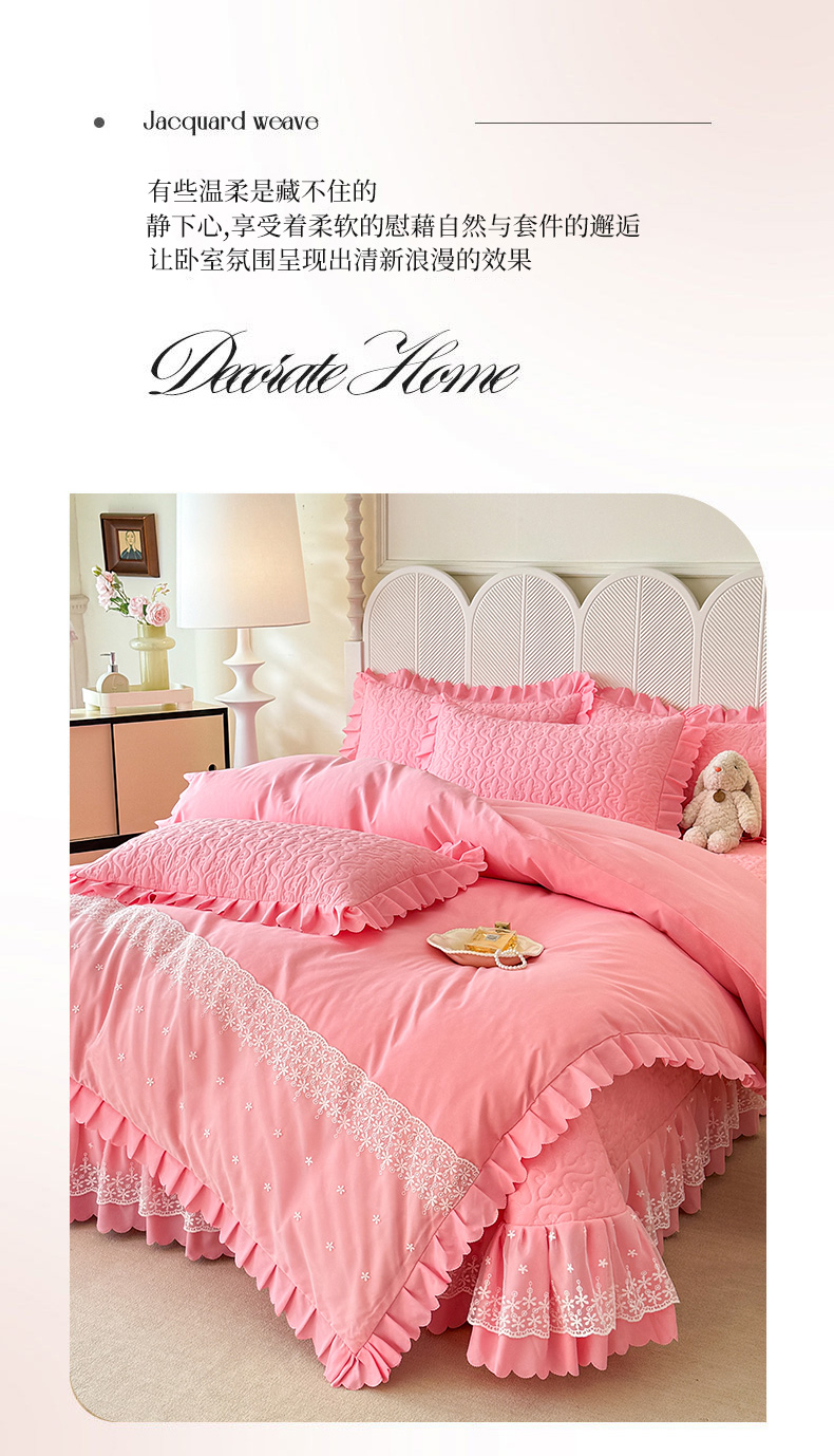 当前位置: 91家纺网 > 商品网购 > 床品套件 > 四件套 > 其它四件套 > 后庭寝室 2025新款法式公主风亲肤床盖四件套-满天星系列 满天星-粉玉