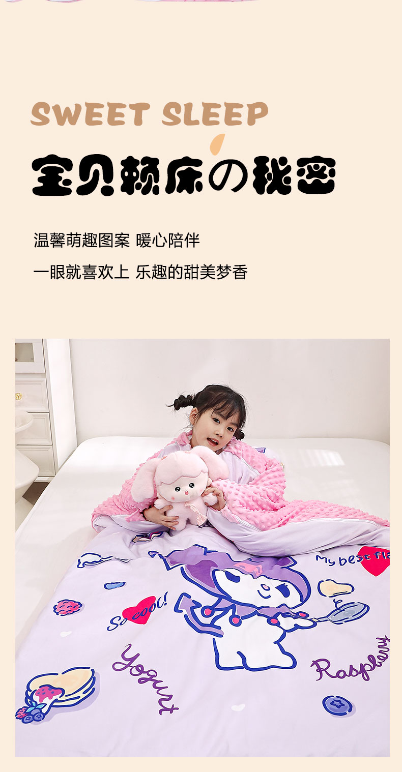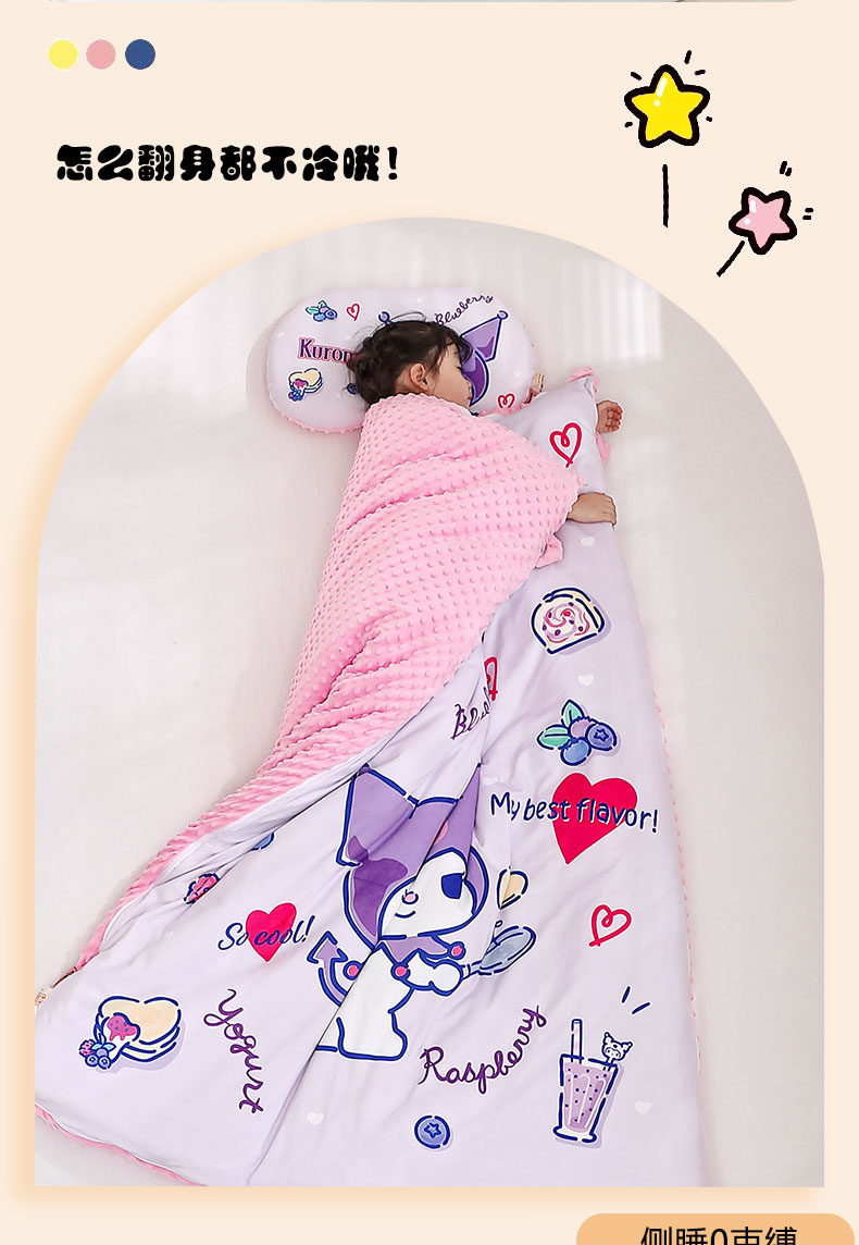 • 91家纺网 家纺一手货源 找家纺 八零年代 2025新款三丽鸥正版分体式可拆洗睡袋宝宝绒保暖儿童防踢被豆豆绒一体被 分体式可拆睡袋-甜甜库洛米