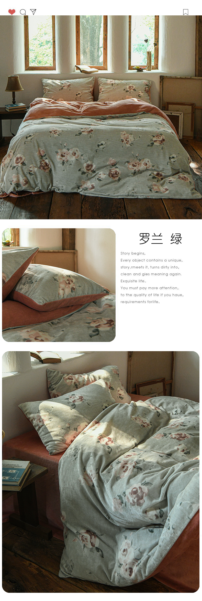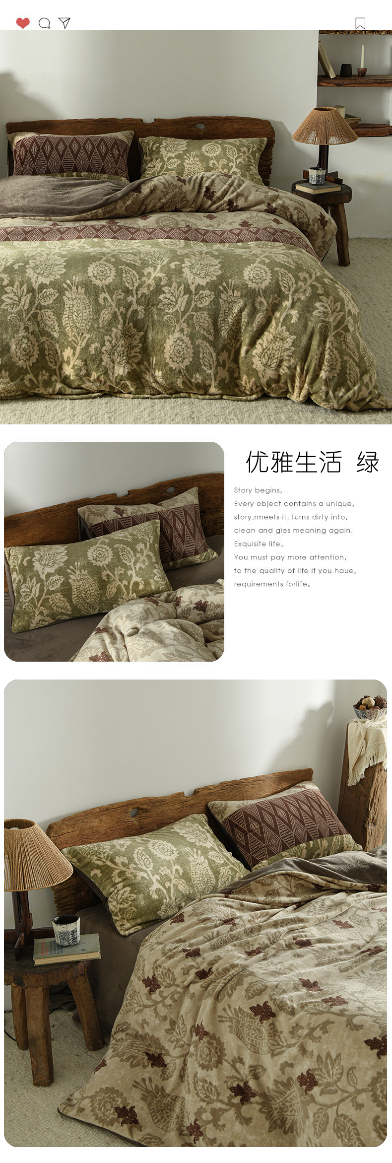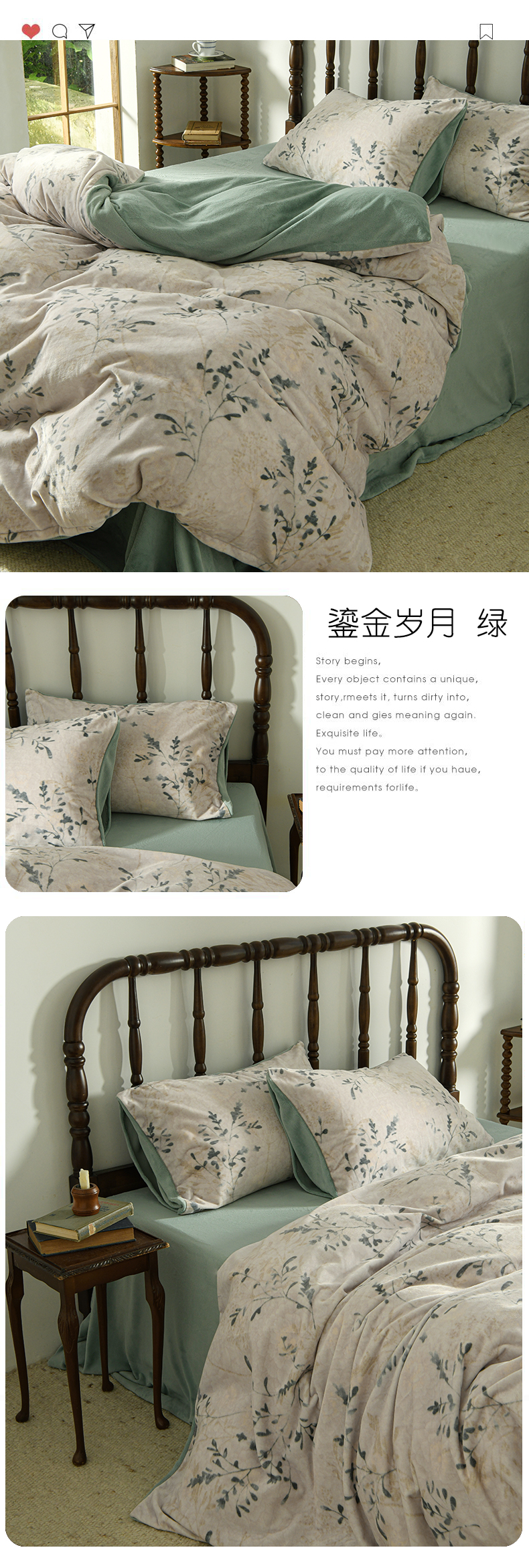 当前位置: 91家纺网 > 商品网购 > 床品套件 > 四件套 > 牛奶绒四件套 > 花漾家居 2025秋冬新品法式复古简约诧寂风牛奶绒四件套 鎏金岁月绿