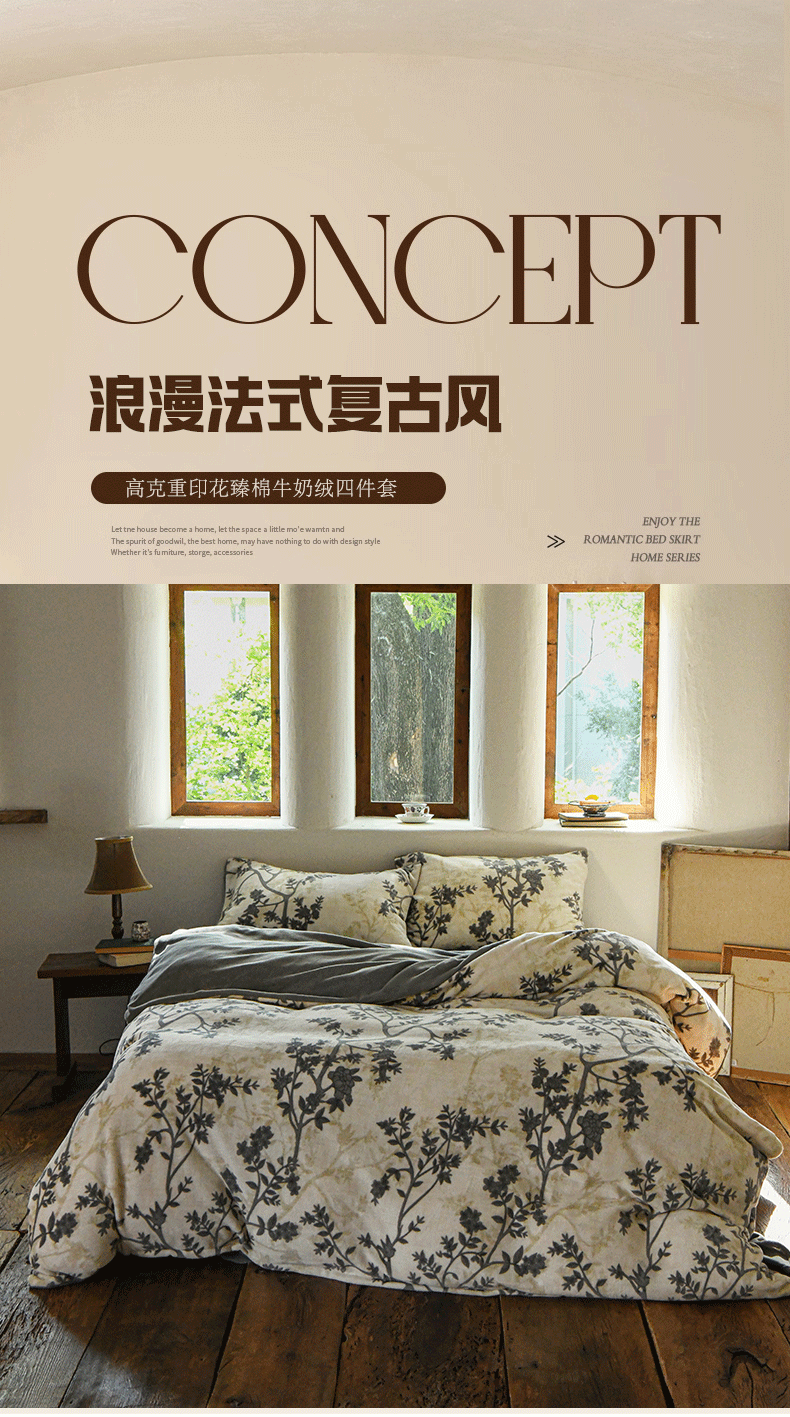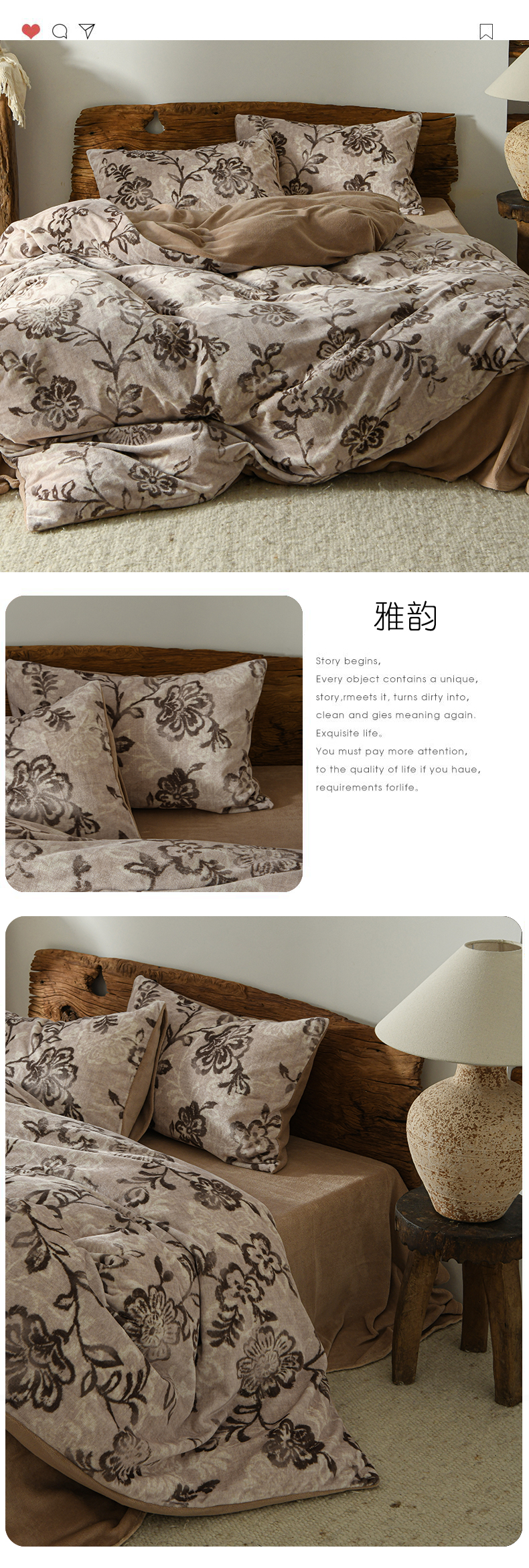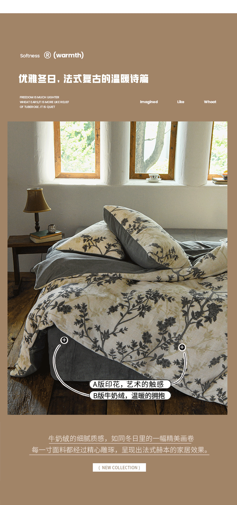 当前位置: 91家纺网 > 商品网购 > 床品套件 > 四件套 > 牛奶绒四件套 > 花漾家居 2025秋冬新品法式复古简约诧寂风牛奶绒四件套 鎏金岁月绿