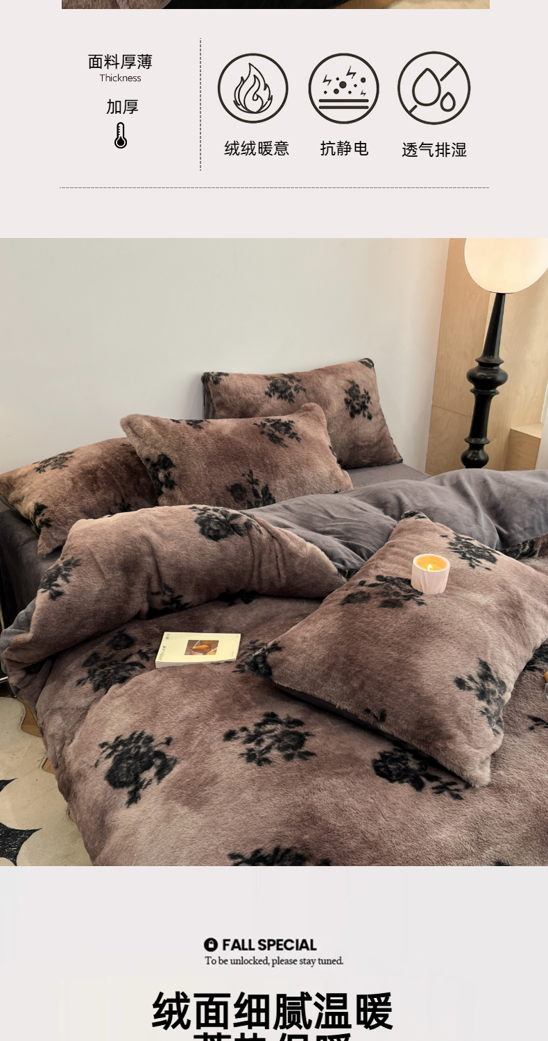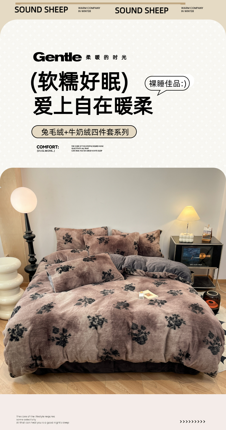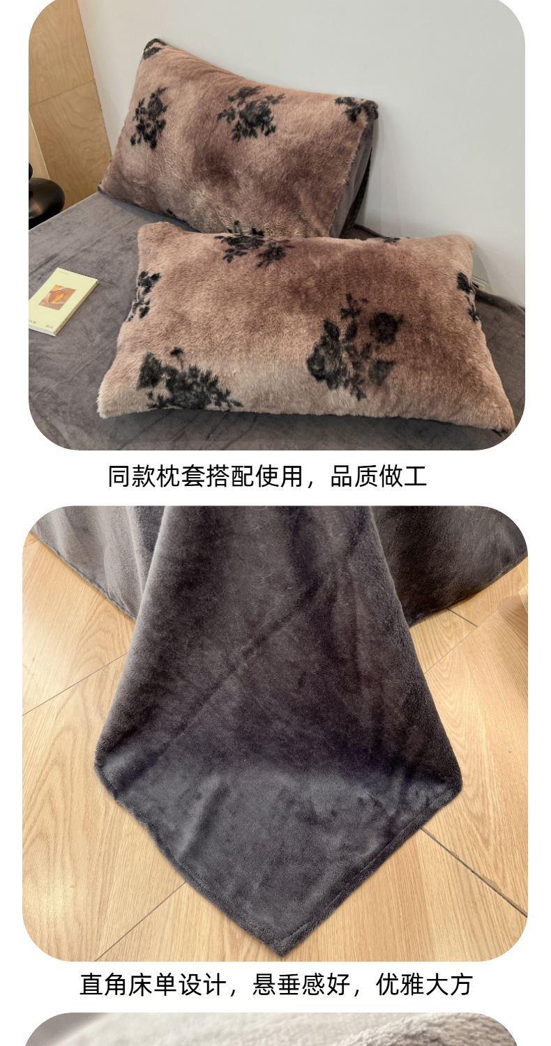 商品名称:金爱家 2025新款全消光牛奶绒A类赫本风纯色獭兔毛绒立体牛奶绒四件套 兔毛-花语灰色