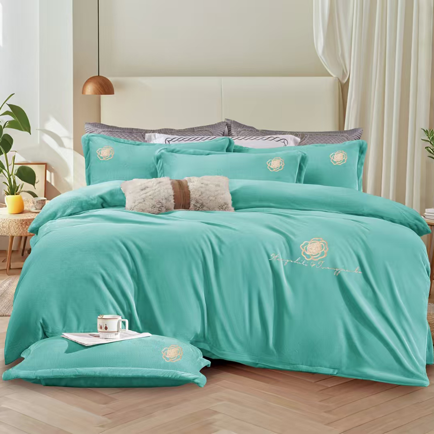 商品名称:小叮当家纺仓储工厂店 2025新款亲肤舒适加厚刺绣款牛奶绒四件套 灰色