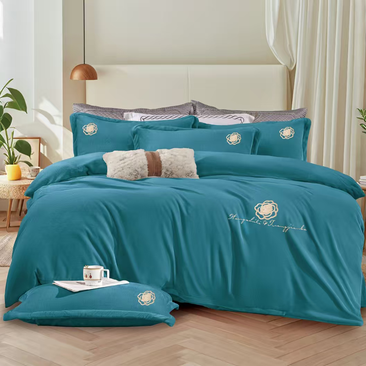 (总)小叮当家纺仓储工厂店 2025新款水晶绒夹棉床裙四件套,宝石兰,藏青,豆沙,粉玉,灰,酒红,墨绿,月光蓝