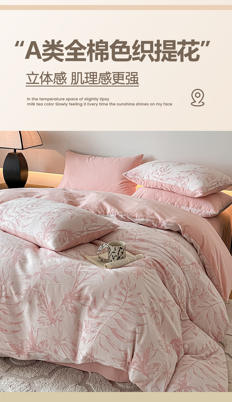 当前位置: 91家纺网 > 商品网购 > 床品套件 > 四件套 > 全棉普通四件套 > 小叮当家纺仓储工厂店 2025新款(买家秀 不断货)A类亲肤全棉纯棉色织大提花磨毛四件套床单床笠-花漾 花间入梦-粉