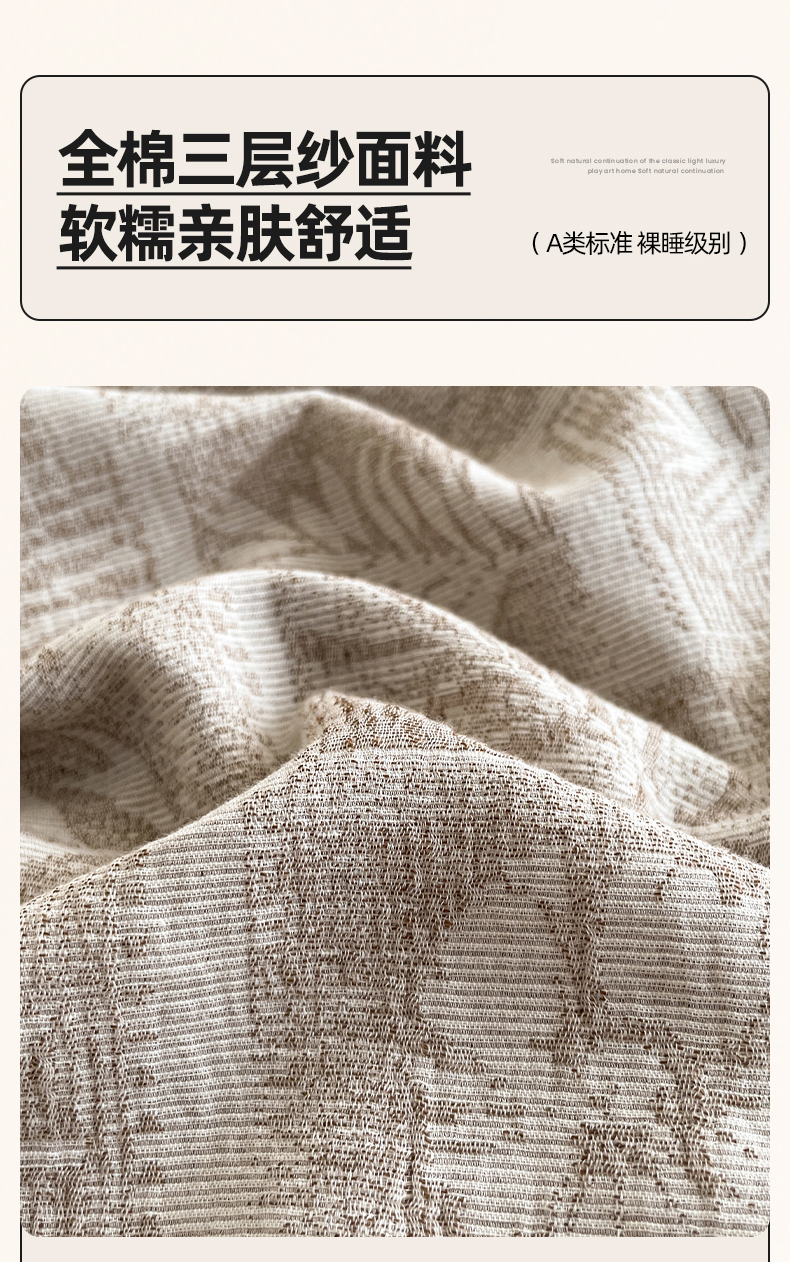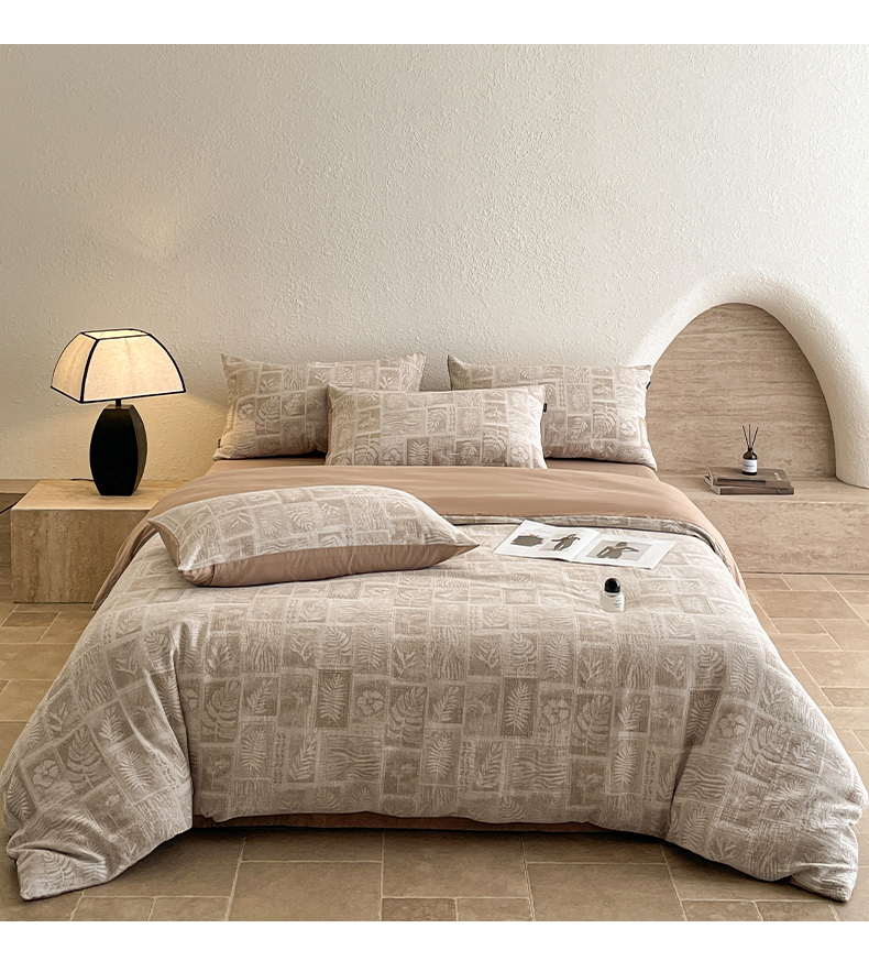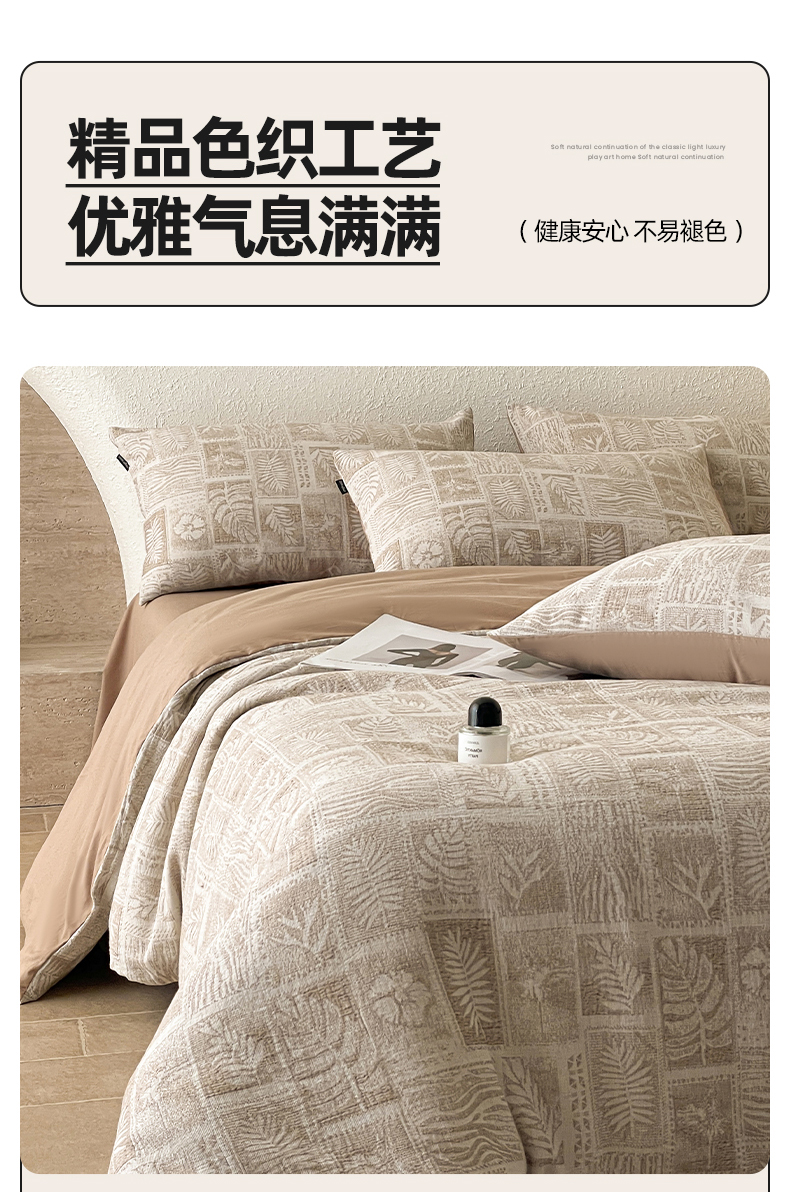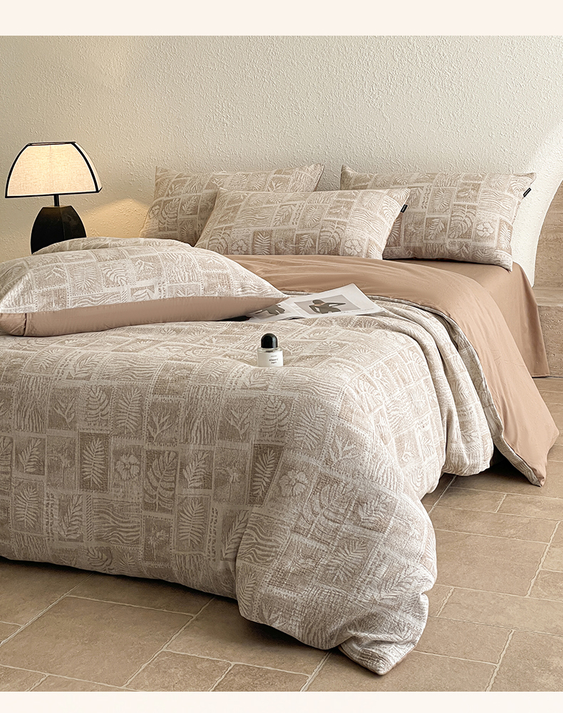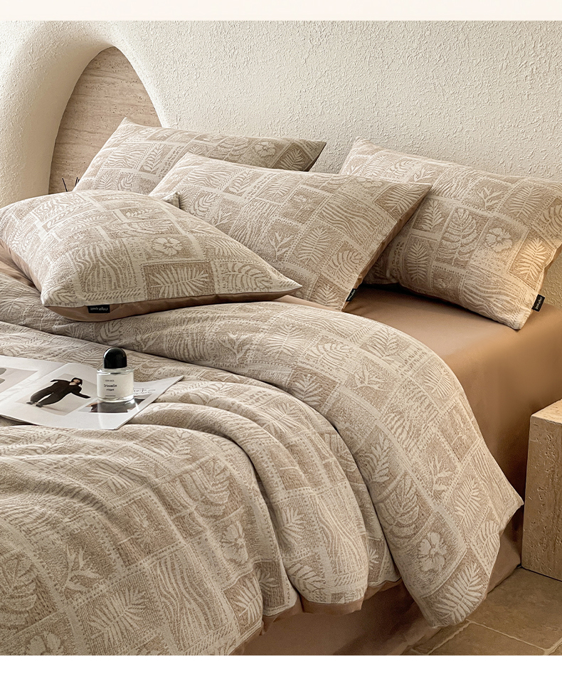 当前位置: 91家纺网 > 商品网购 > 床品套件 > 四件套 > 全棉普通四件套 > 小叮当家纺仓储工厂店 2025新款秋冬(买家秀 不断货)A类亲肤全棉纯棉色织水洗三层纱提花纯棉四件套 棕榈韵致-咖