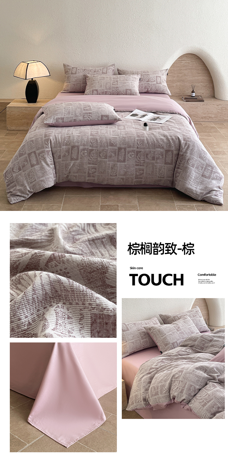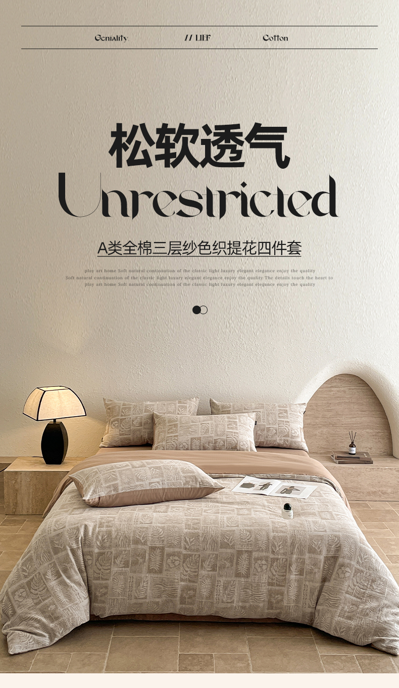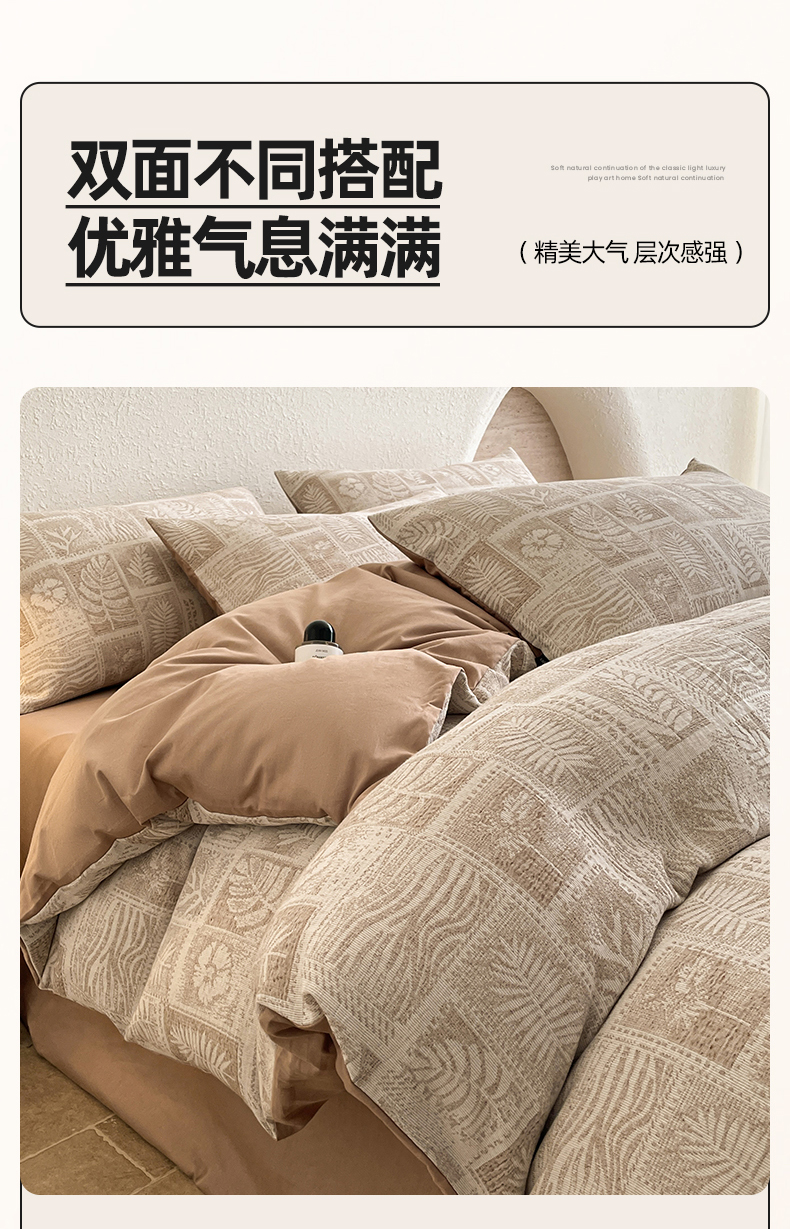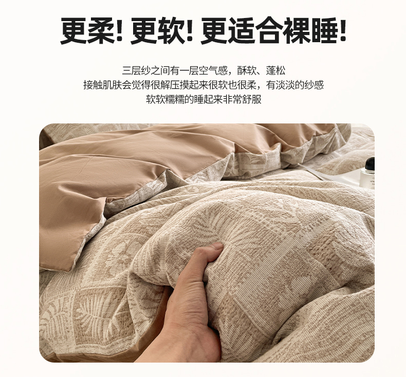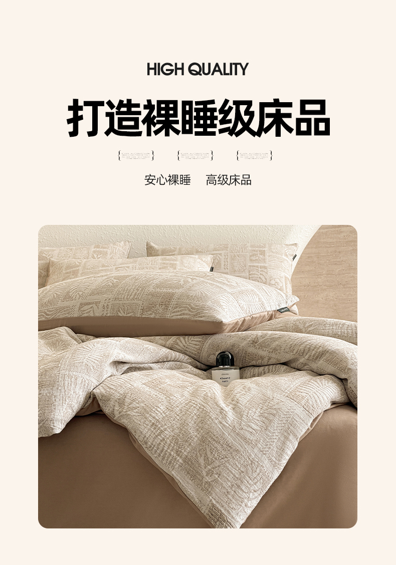 当前位置: 91家纺网 > 商品网购 > 床品套件 > 四件套 > 全棉普通四件套 > 小叮当家纺仓储工厂店 2025新款秋冬(买家秀 不断货)A类亲肤全棉纯棉色织水洗三层纱提花纯棉四件套 棕榈韵致-咖