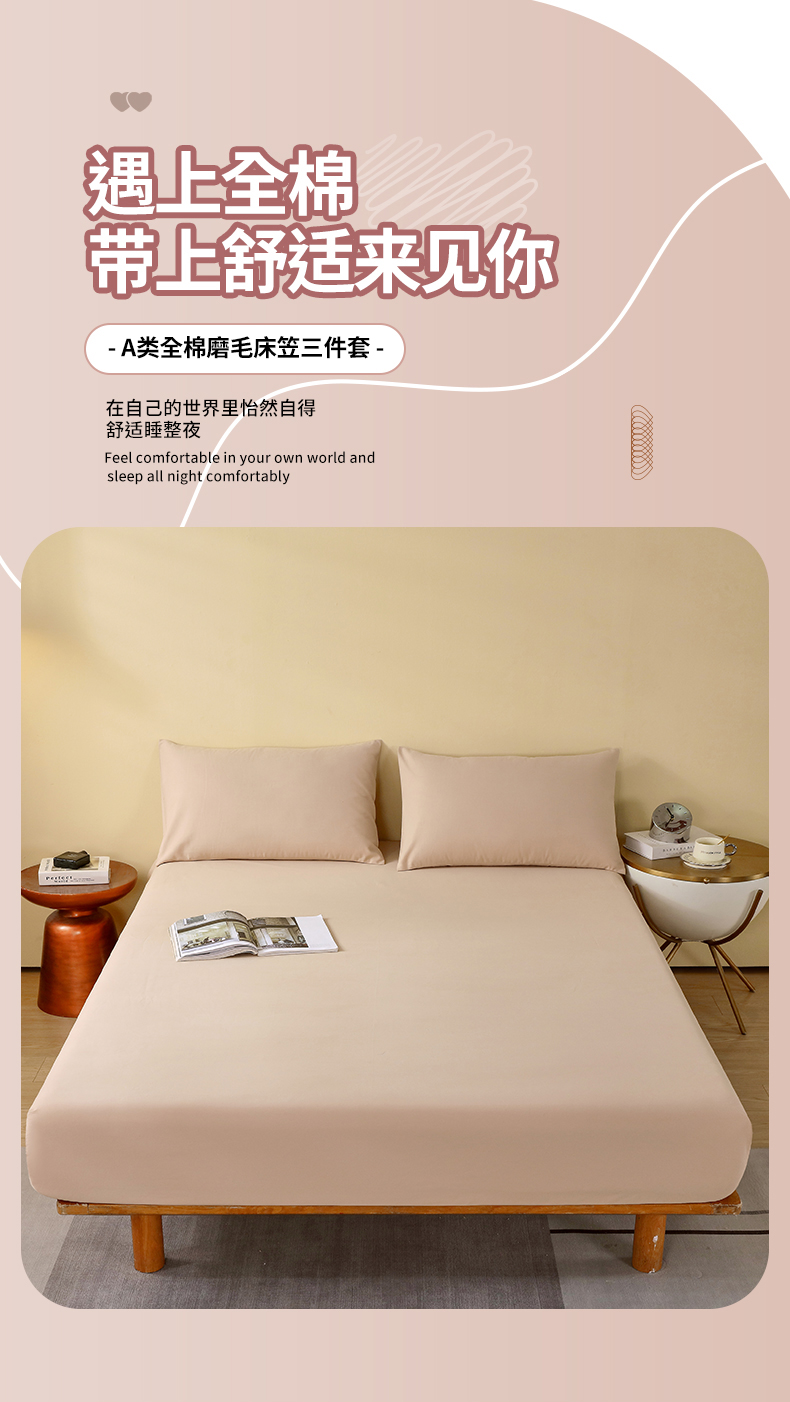小叮当家纺仓储工厂店 2025新款提供买家秀爆款花型不断货A类母婴级全棉磨毛床笠单品床笠单件床笠 浅卡其