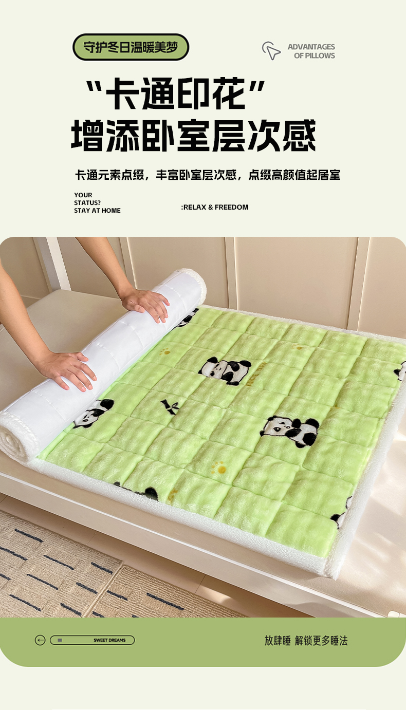 (总)缦吉 2025冬季新款亲肤舒适简约牛奶绒床垫床褥子,果绿,浅粉,深蓝,银灰