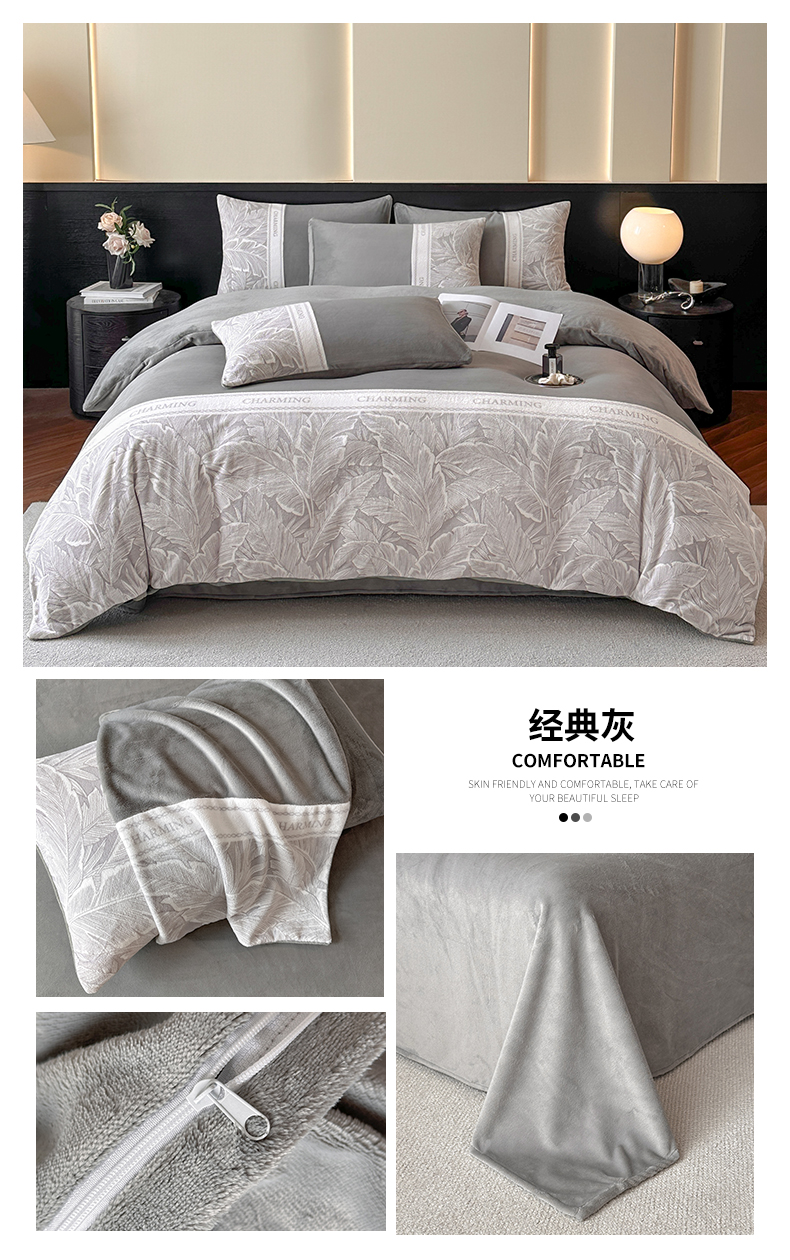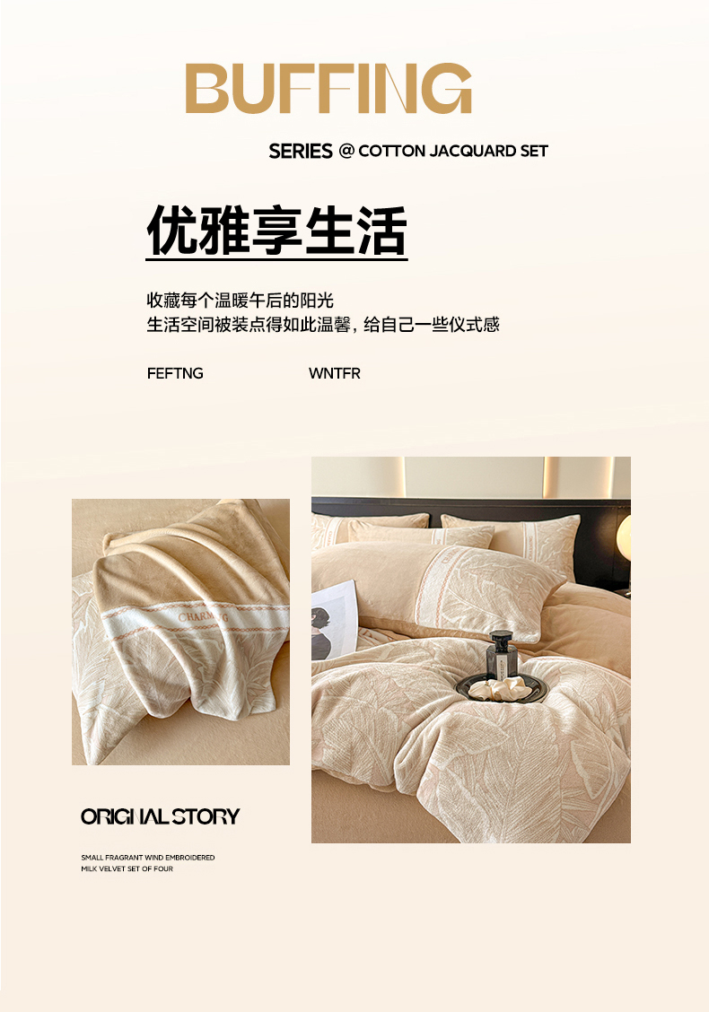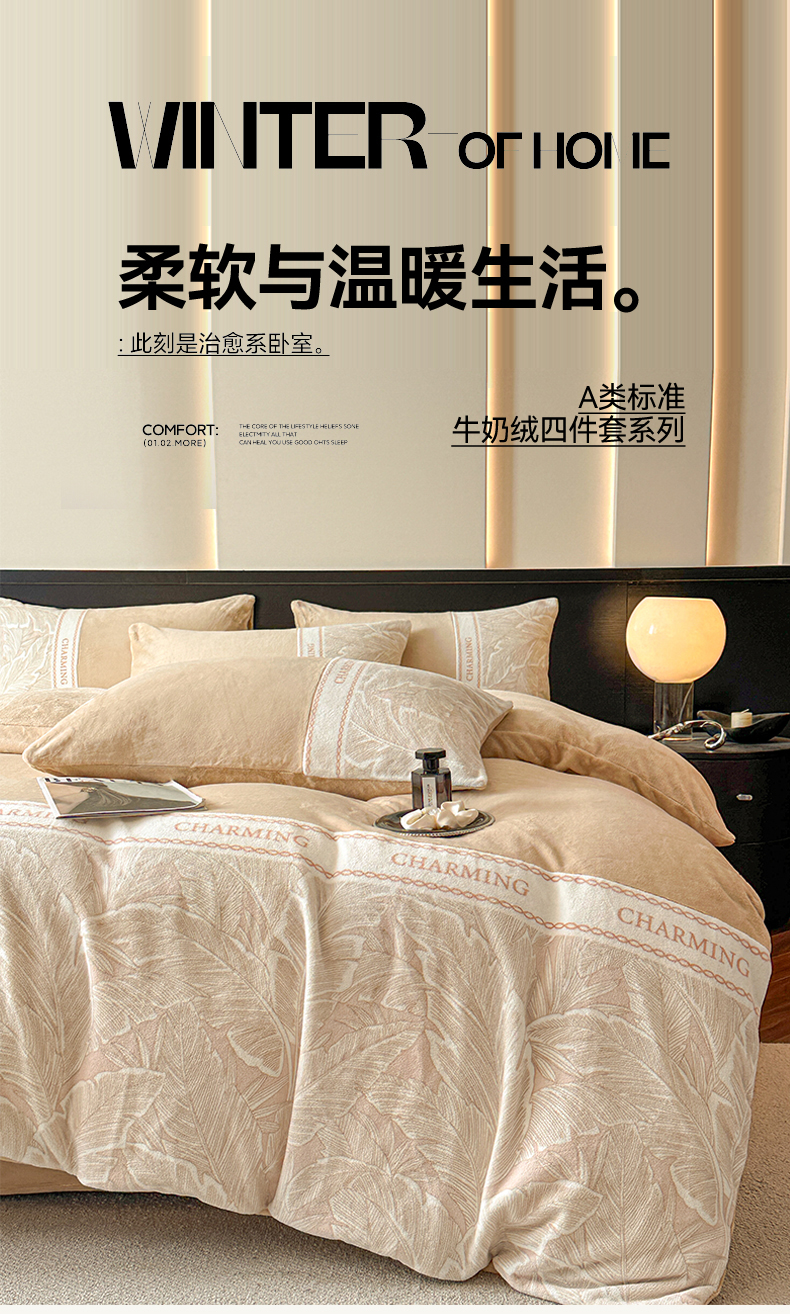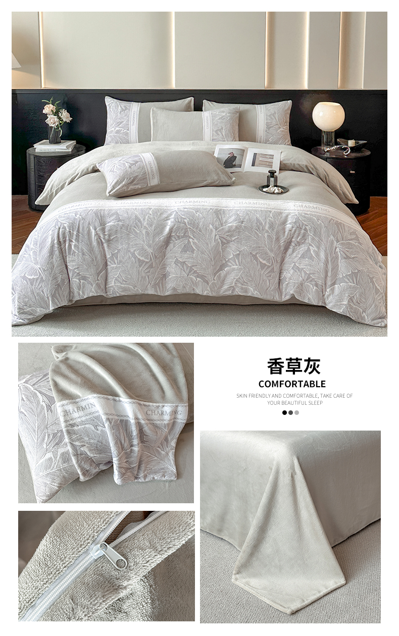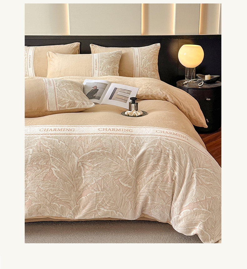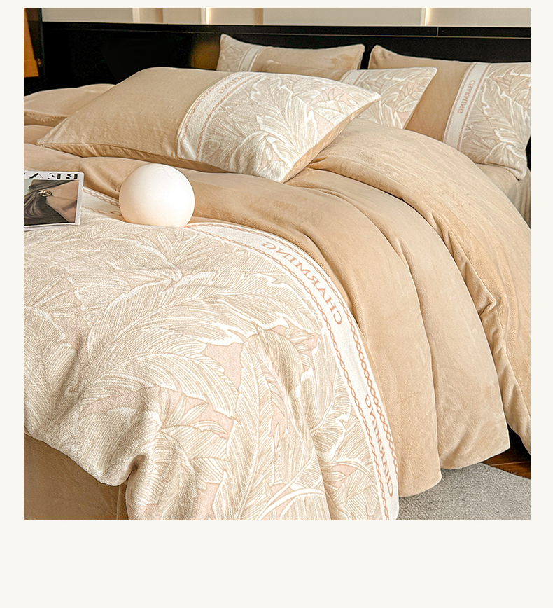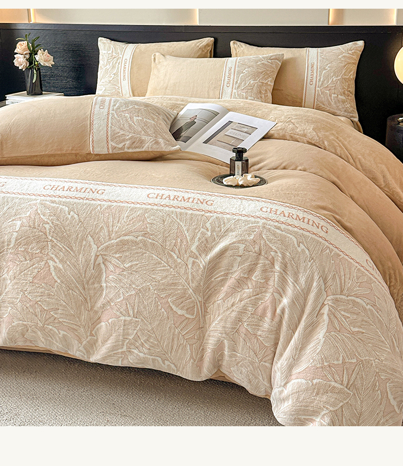 (总)梦幻之城 2025新款雕花牛奶绒系列四件套-丽娜,丽娜-橙意粉,丽娜-香槟色,丽娜-香草灰,丽娜-月白绿