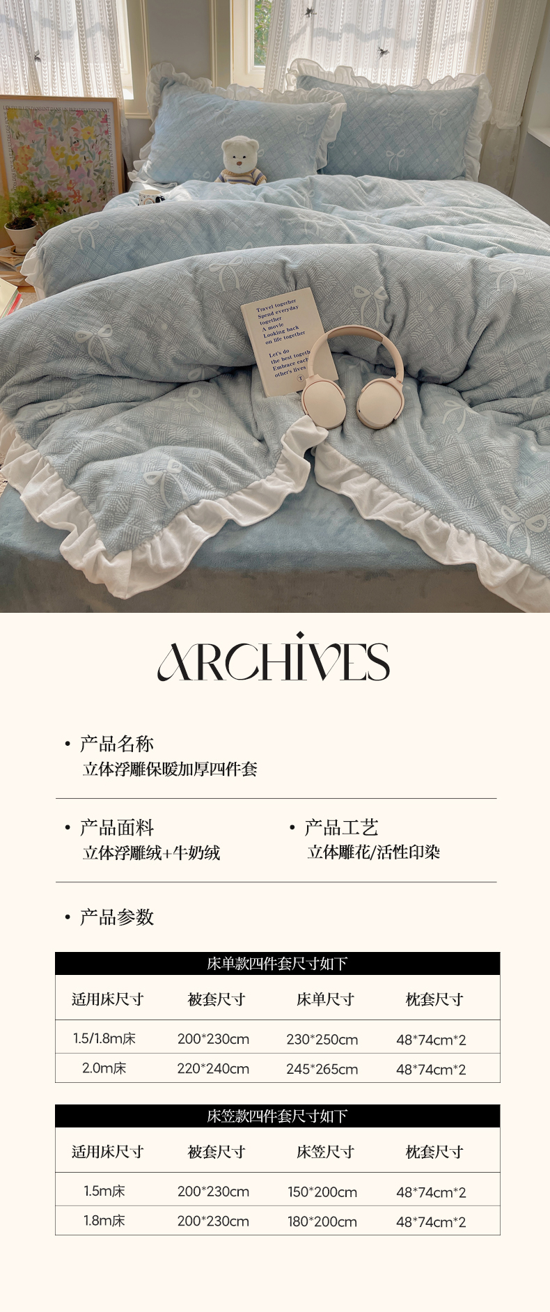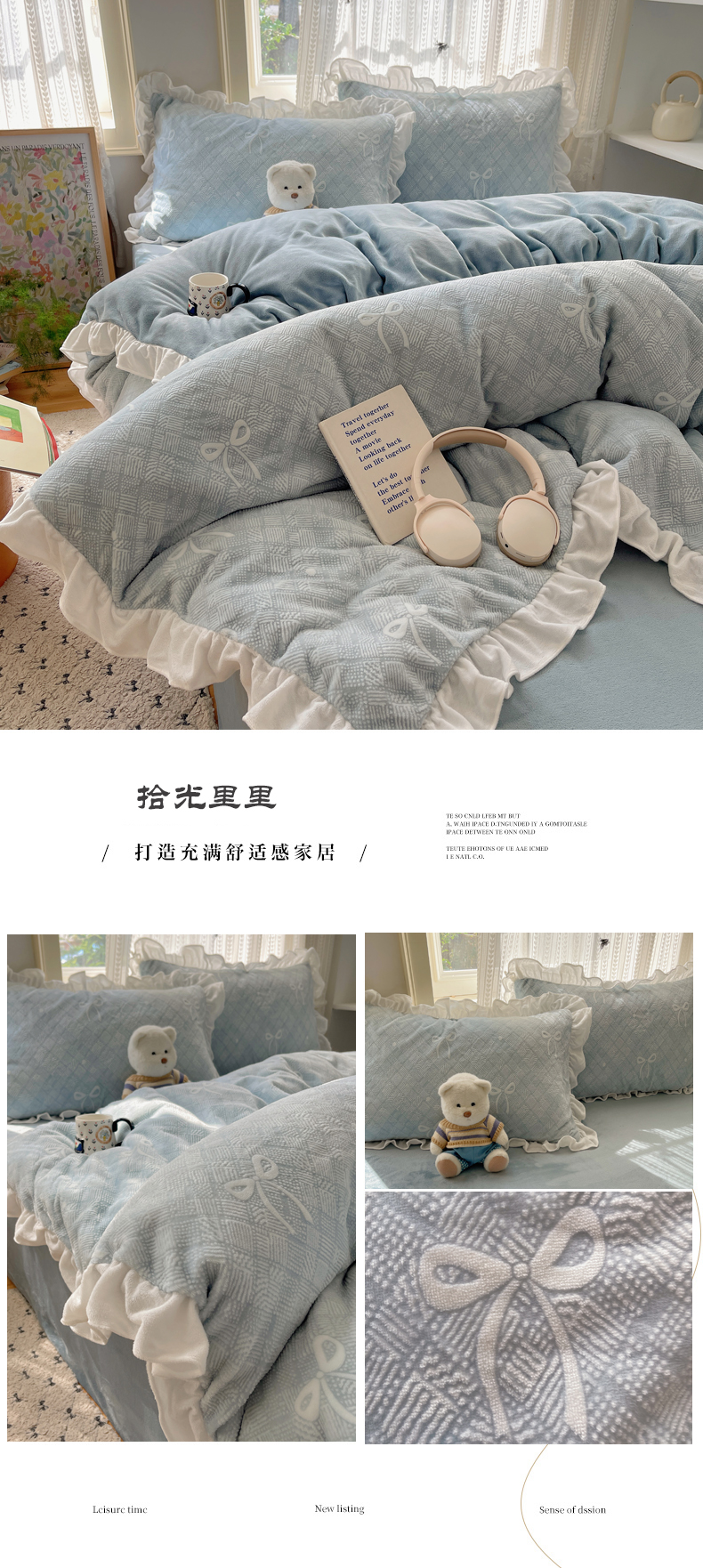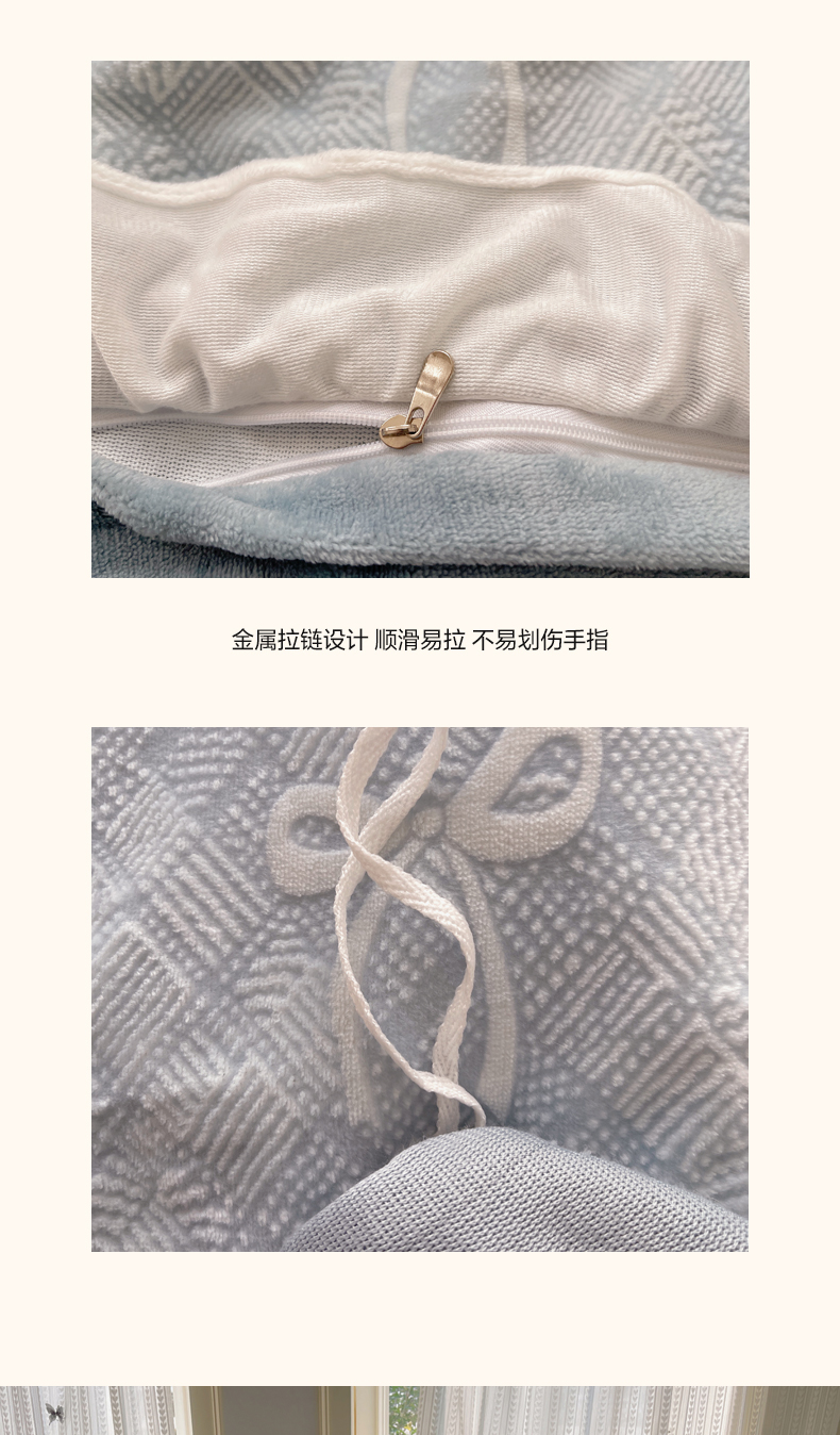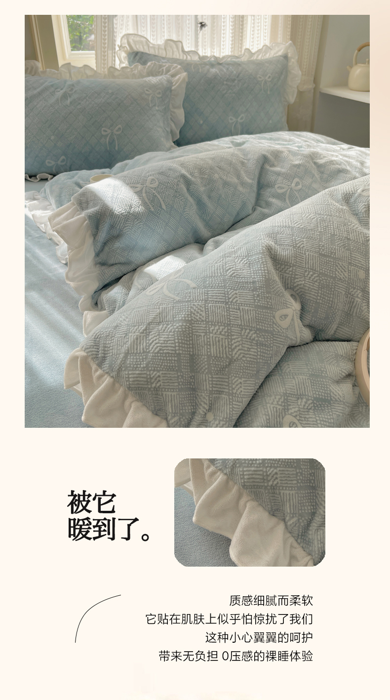 商品名称:三朵家纺 2025新款韩系花边雕花绒牛奶绒法莱绒四件套 拾光里里