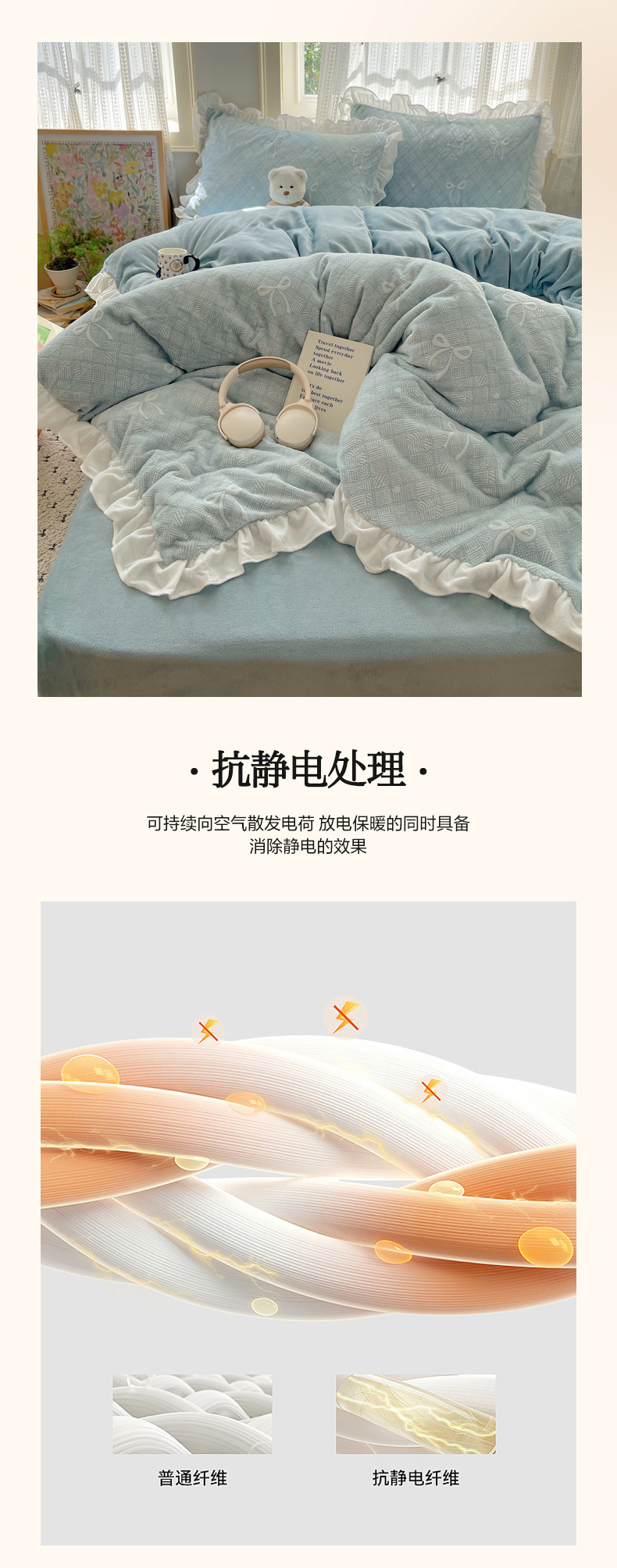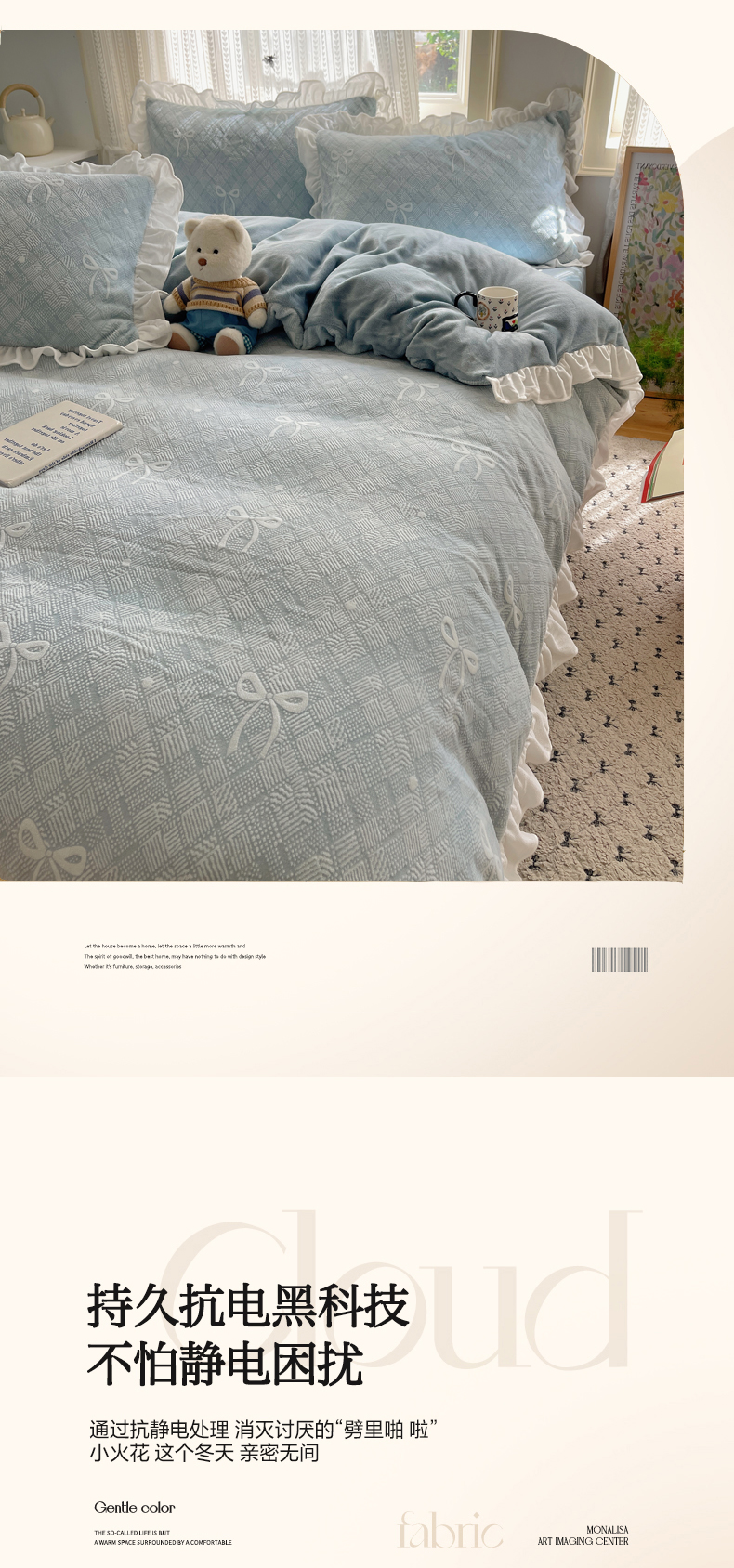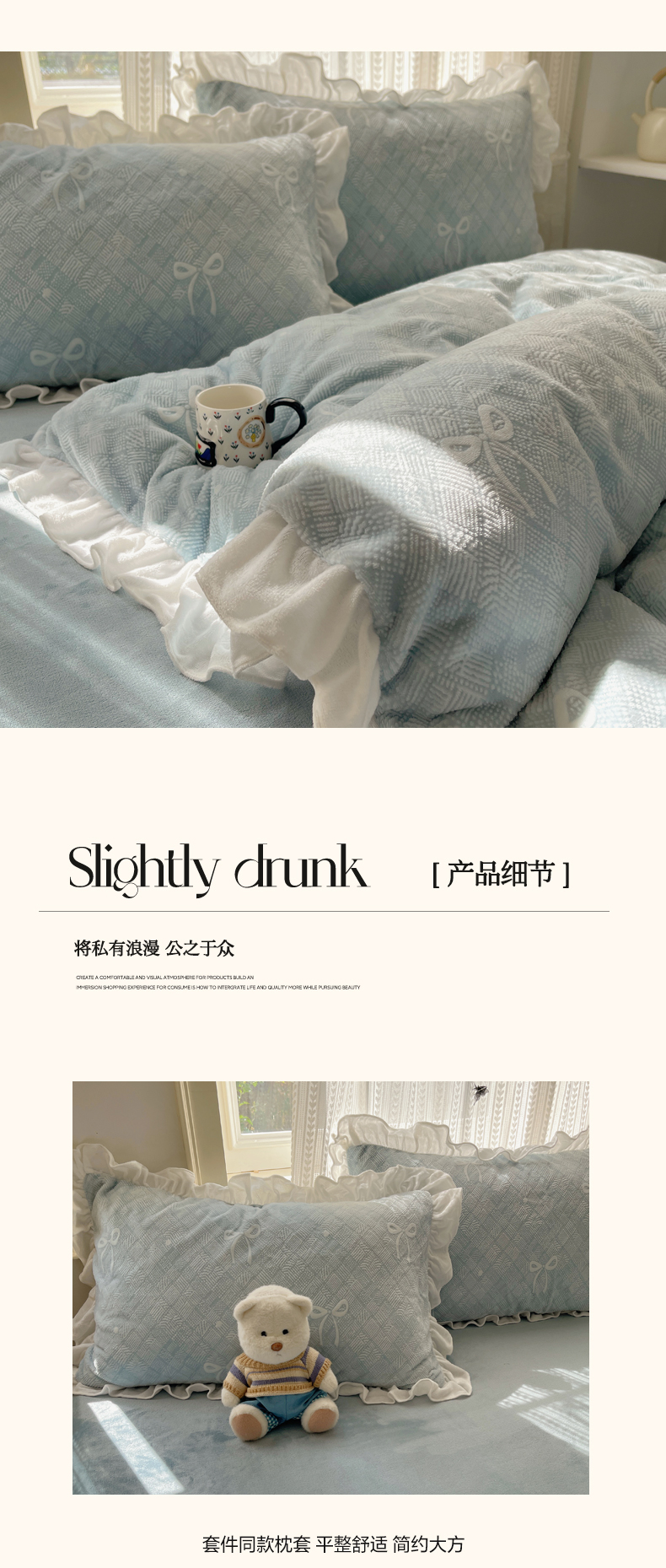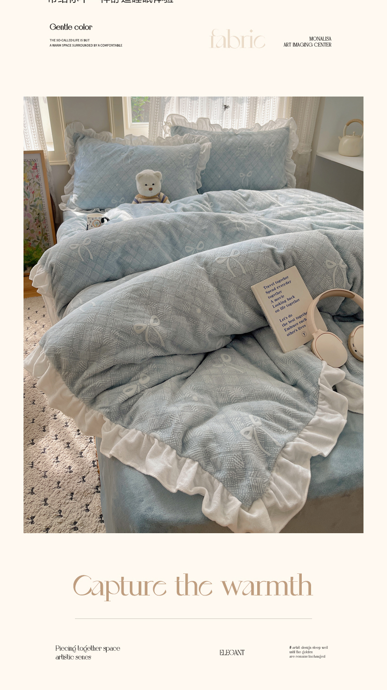 商品名称:三朵家纺 2025新款韩系花边雕花绒牛奶绒法莱绒四件套 拾光里里