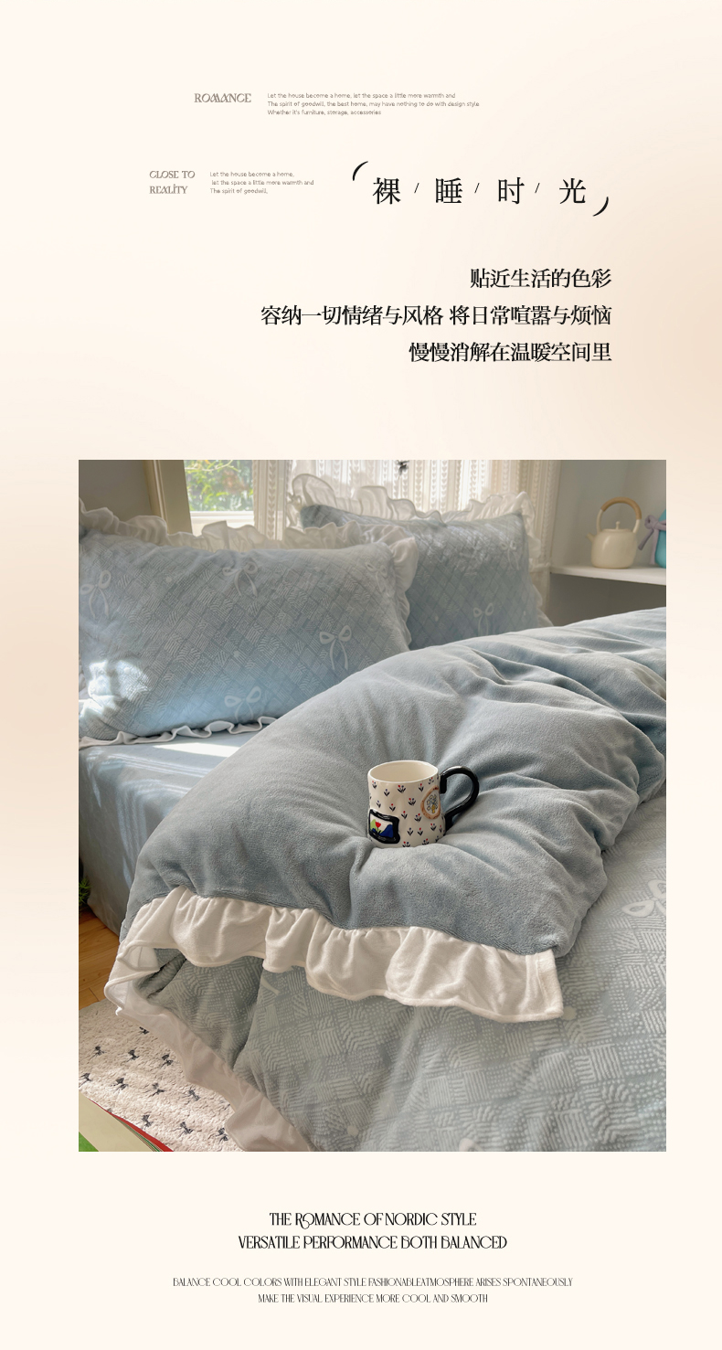 三朵家纺 2025新款韩系花边雕花绒牛奶绒法莱绒四件套 拾光里里