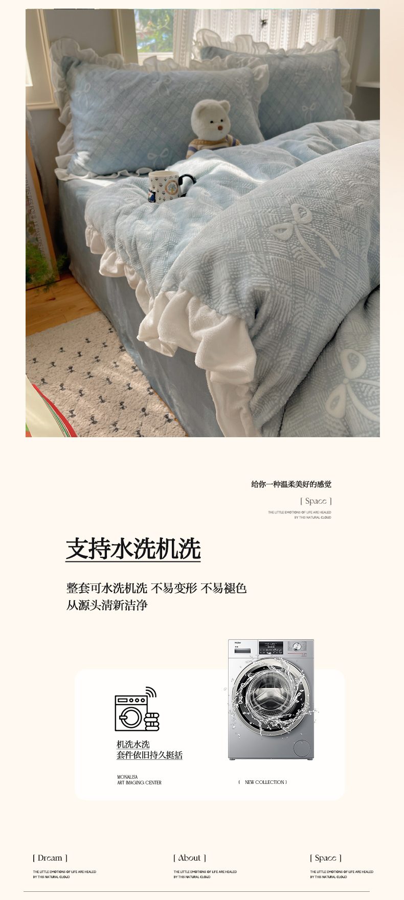 (总)三朵家纺 2026新款ins风全棉纯色双拼水洗棉四件套极简风系列,风青月白,焦糖曲奇,蓝韵雾纱,流光奶绿,抹茶奶黄,浅蓝芝士,香芋奶昔,烟墨灰,云纱可可