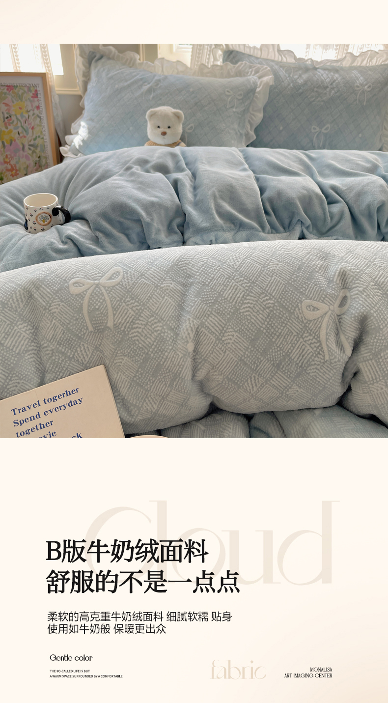 (总)三朵家纺 2025新款3D立体加厚雕花绒牛奶绒四件套-米兰系列,米兰-灰,米兰-蓝,米兰-玉,米兰-紫