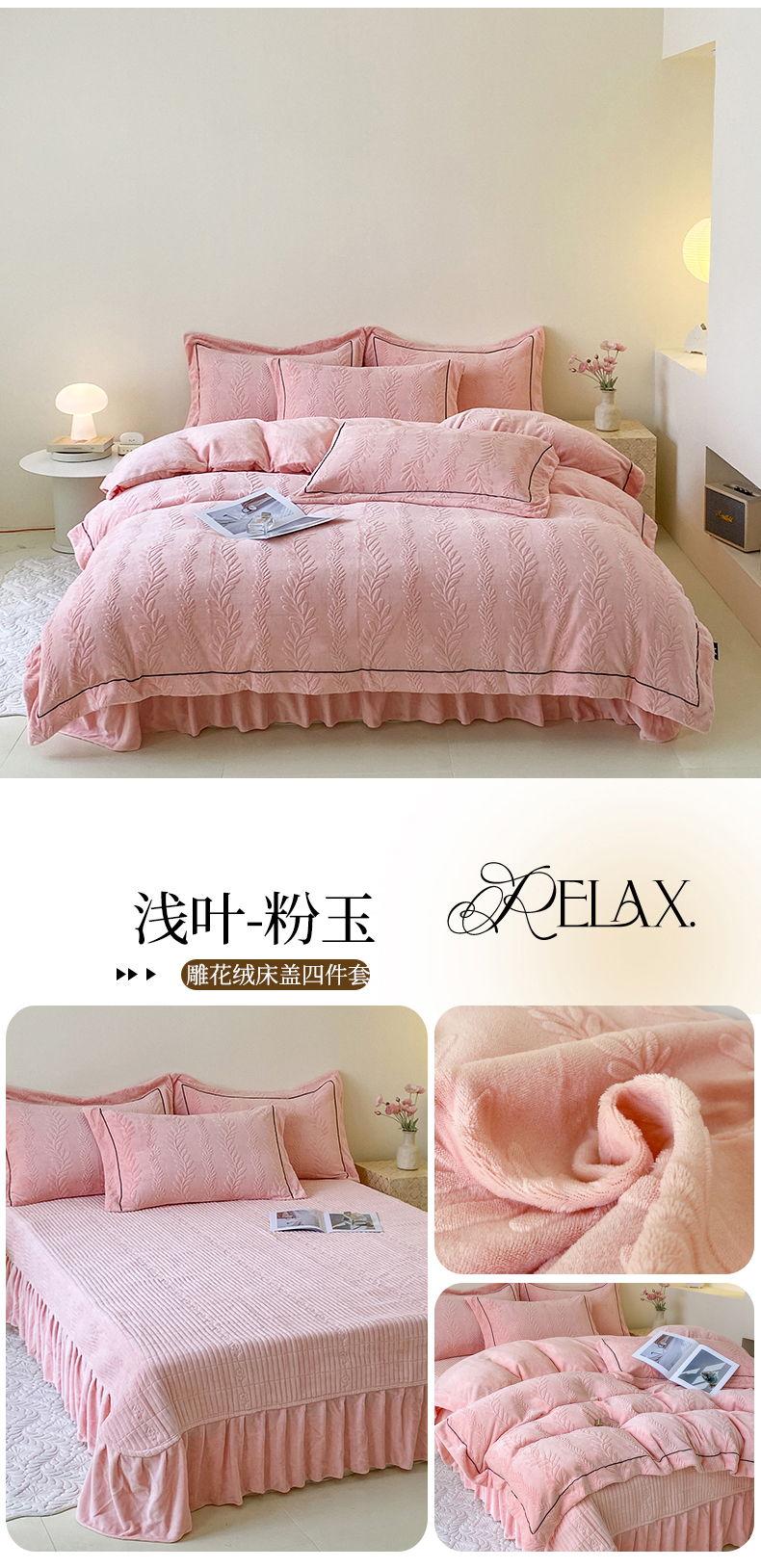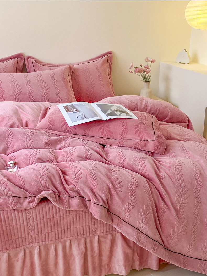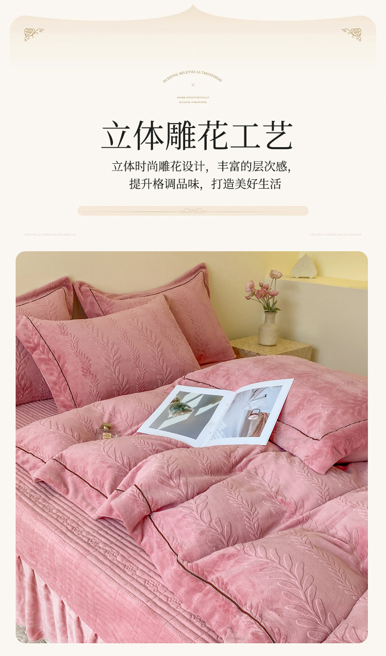 (总)美伦美焕 2025新款加厚雕花绒床盖款四件套-浅叶,浅叶-粉玉,浅叶-卡其,浅叶-绅士灰,浅叶-蔚蓝,浅叶-胭脂红