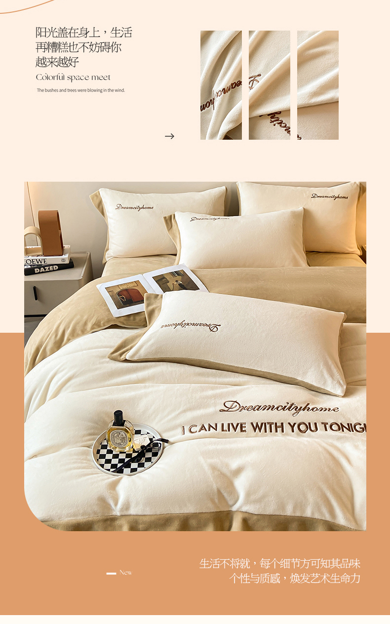 当前位置: 91家纺网 > 商品网购 > 床品套件 > 四件套 > 牛奶绒四件套 > 梦幻之城 2025新款牛奶绒刺绣四件套-安克斯绒C款 安克斯绒-奶芋色+杏仁