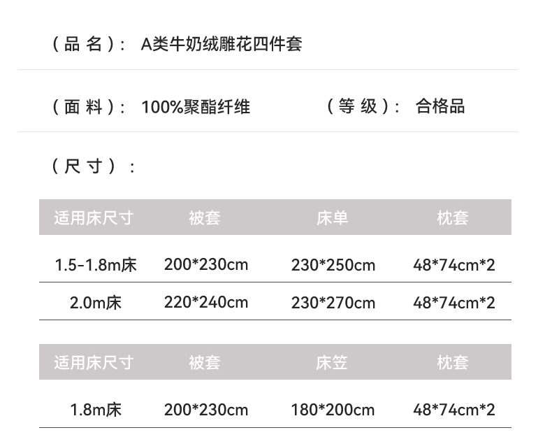 【床笠款】1.8四件套-被套200x230 | ¥95.00 |
