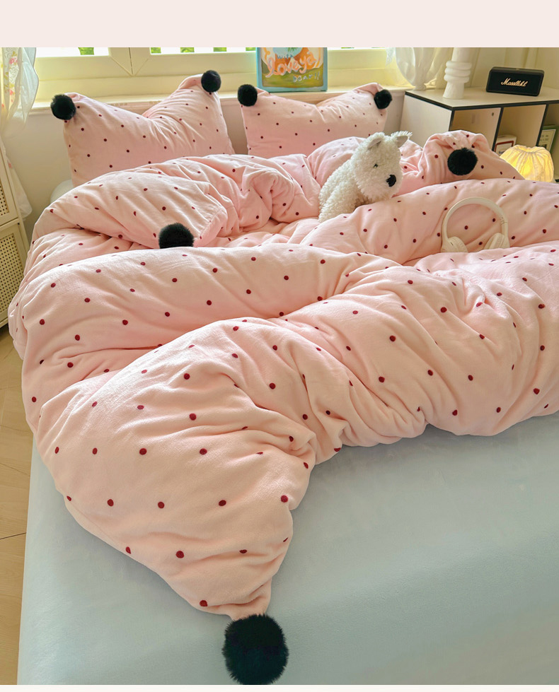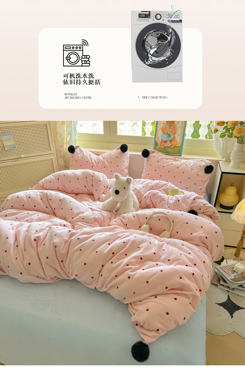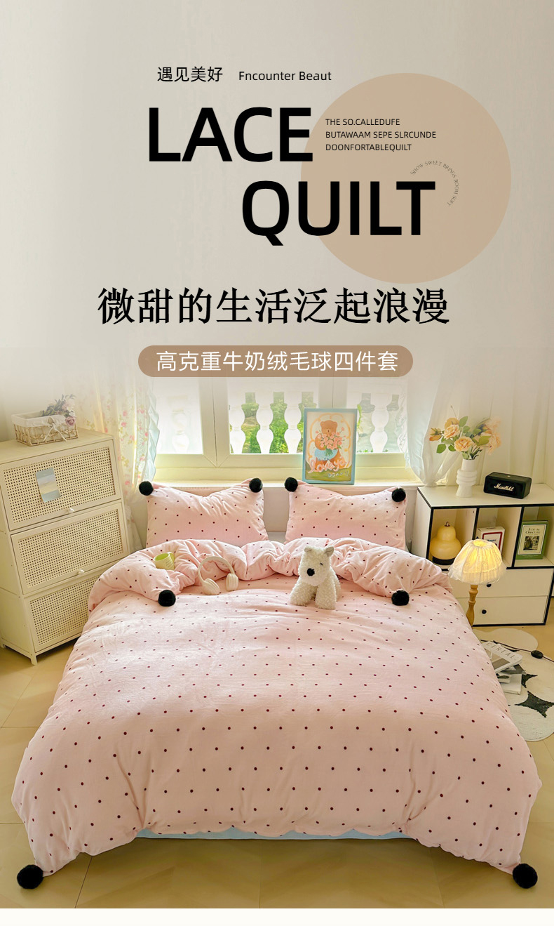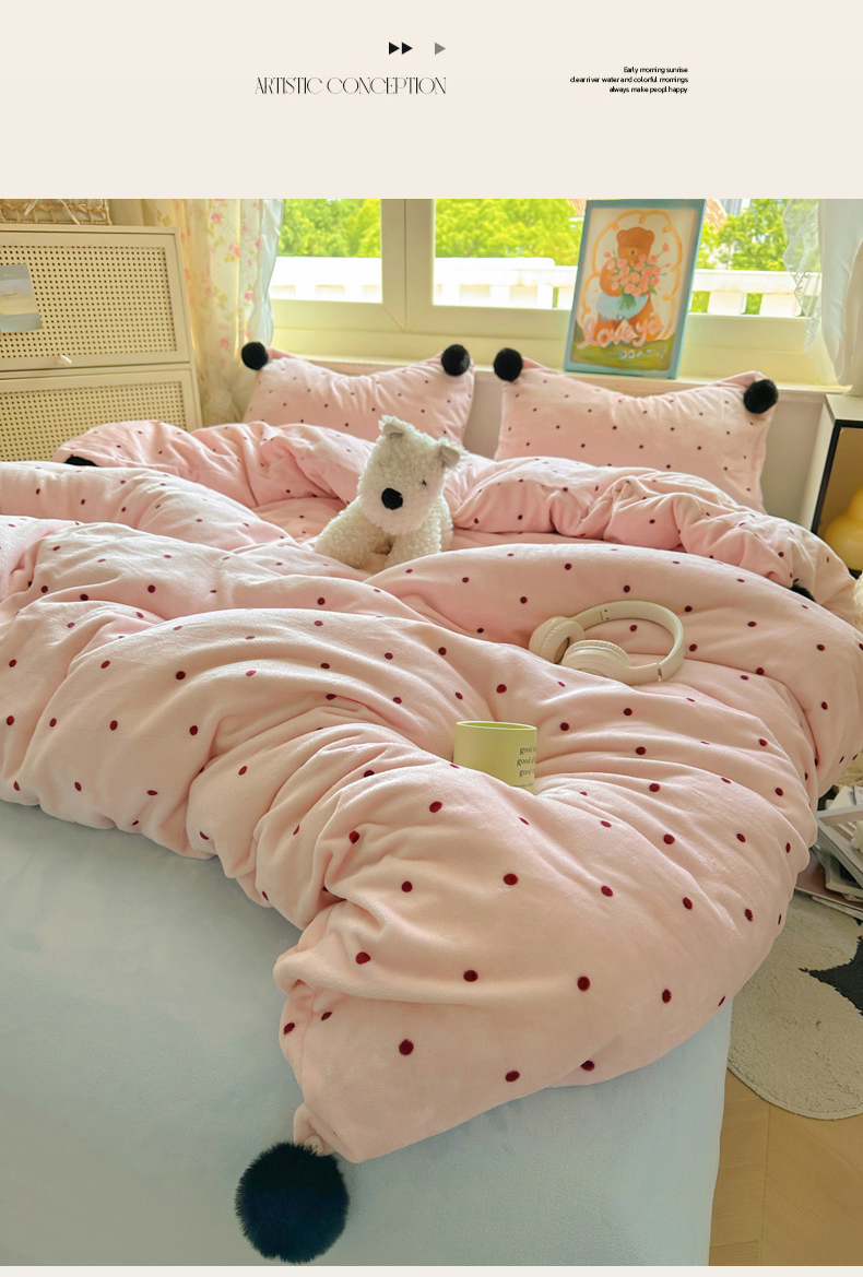 当前位置: 91家纺网 > 商品网购 > 床品套件 > 四件套 > 牛奶绒四件套 > 丽涵家纺 2025秋冬新品混搭波点牛奶绒四件套三件套-拍摄风格二 波点-粉色