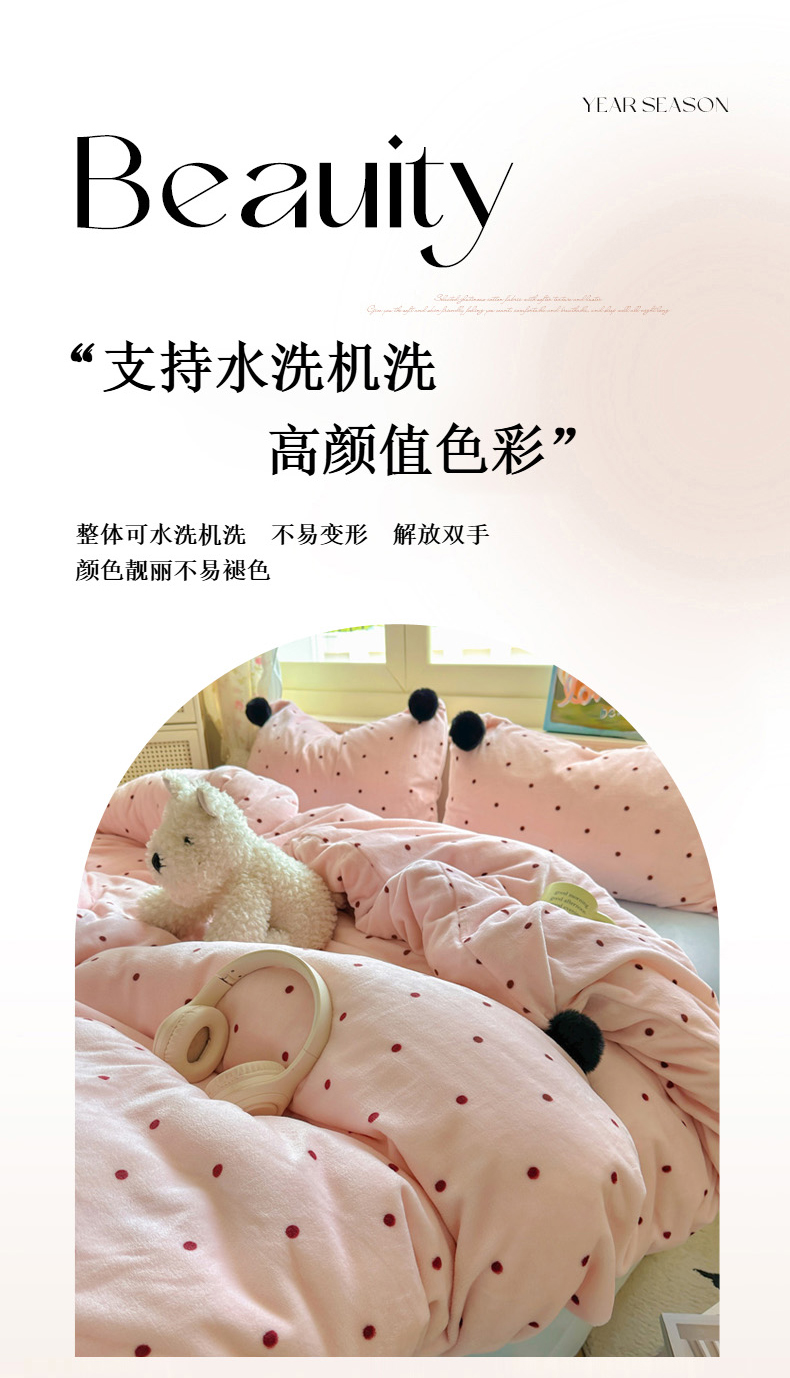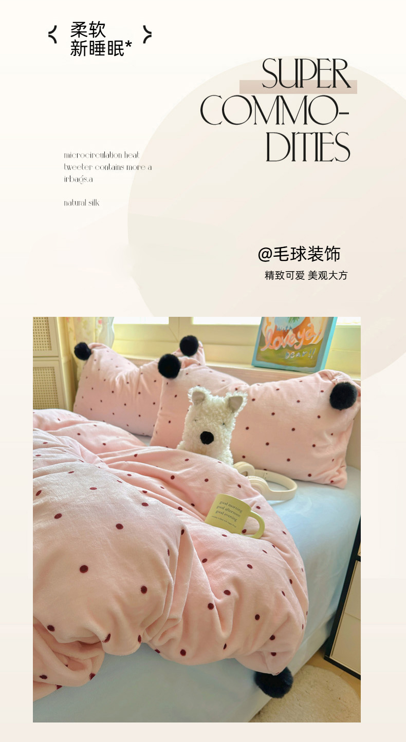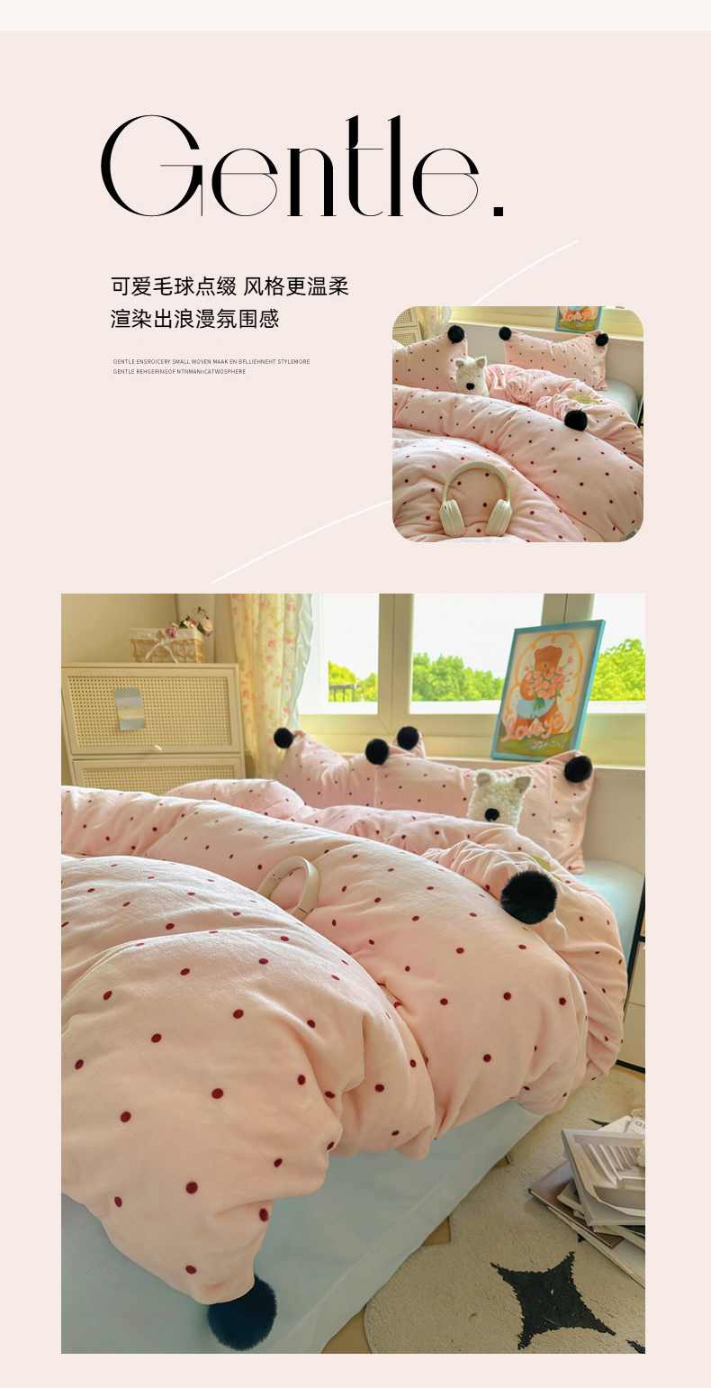 当前位置: 91家纺网 > 商品网购 > 床品套件 > 四件套 > 牛奶绒四件套 > 丽涵家纺 2025秋冬新品混搭波点牛奶绒四件套三件套-拍摄风格二 波点-粉色