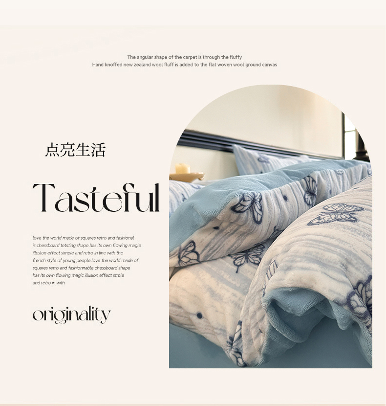 梦幻之城 2025新款雕花牛奶绒系列四件套-蝶缦 蝶缦-天空蓝