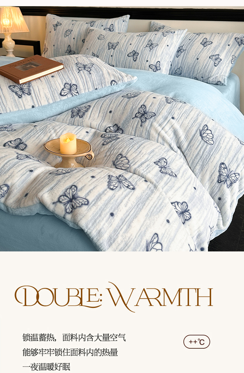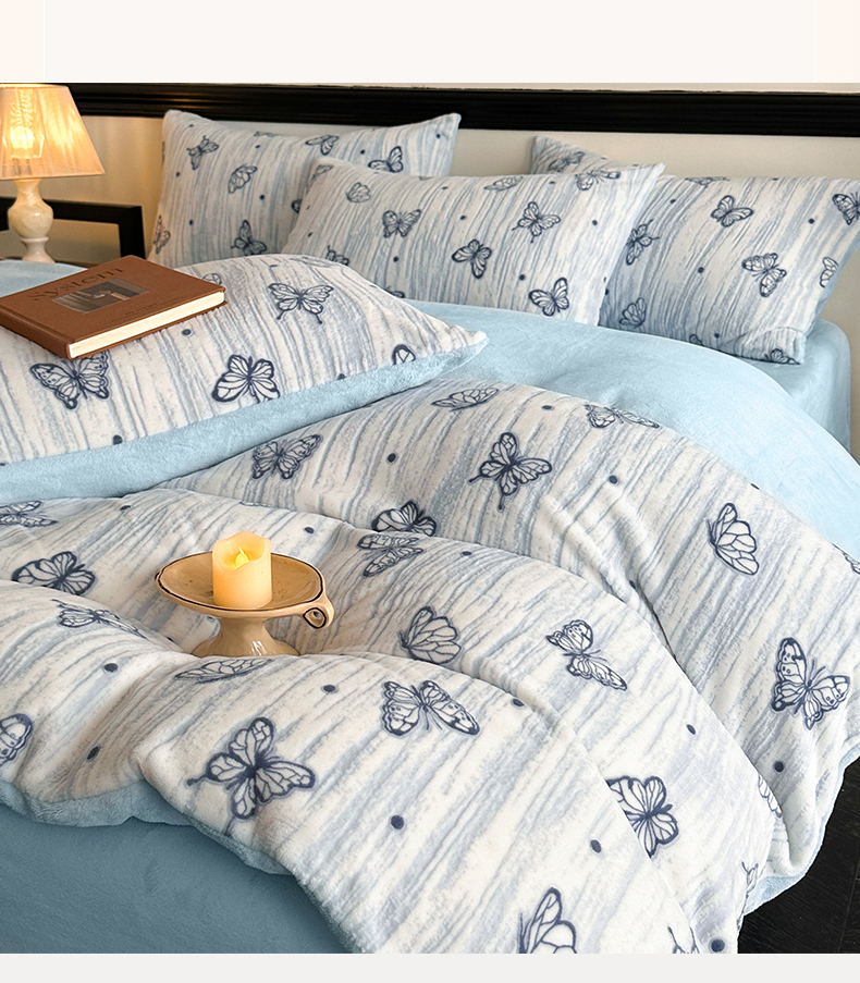 商品名称:梦幻之城 2025新款雕花牛奶绒系列四件套-蝶缦 蝶缦-天空蓝