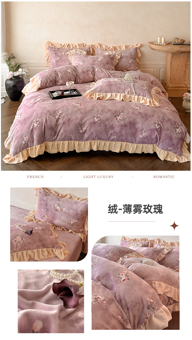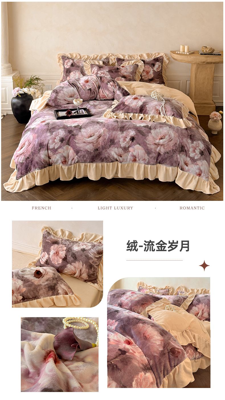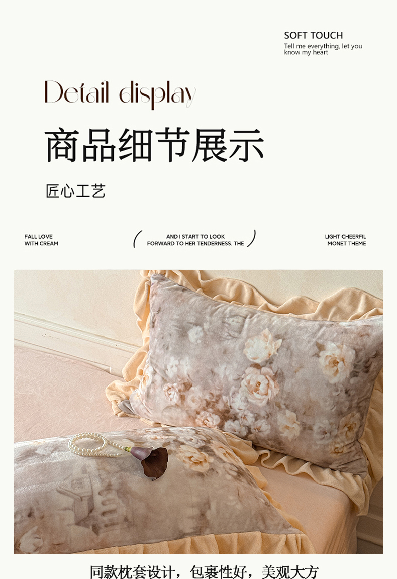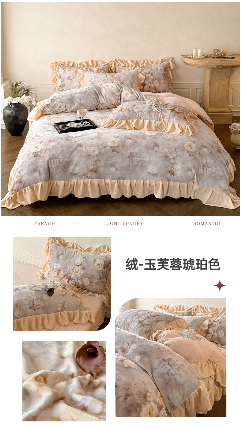 商品名称:(总)首尔家纺 2025新款牛奶绒法式数码印花花边款四件套