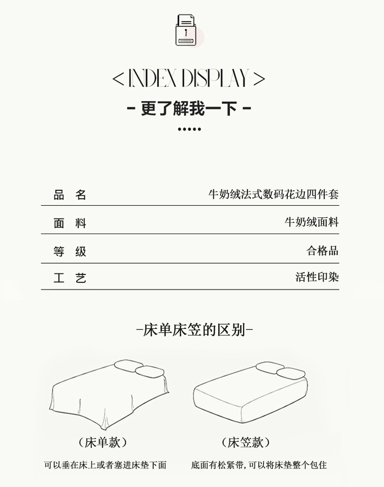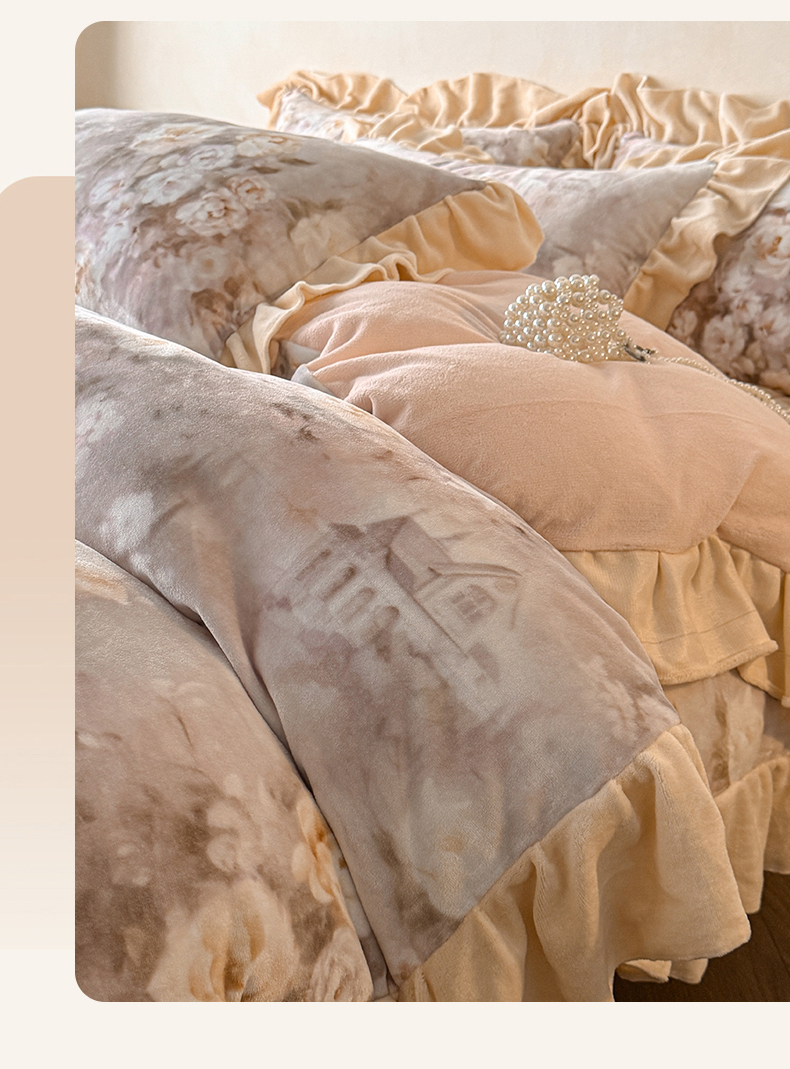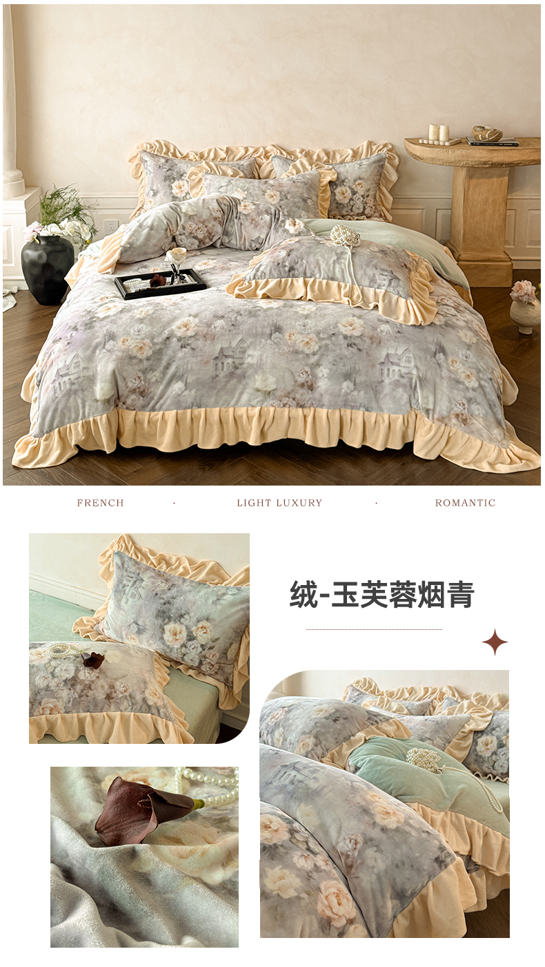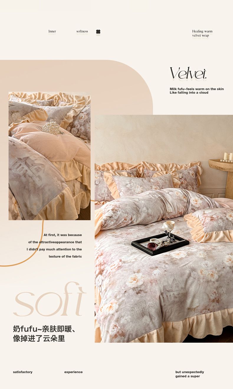 商品名称:(总)首尔家纺 2025新款牛奶绒法式数码印花花边款四件套