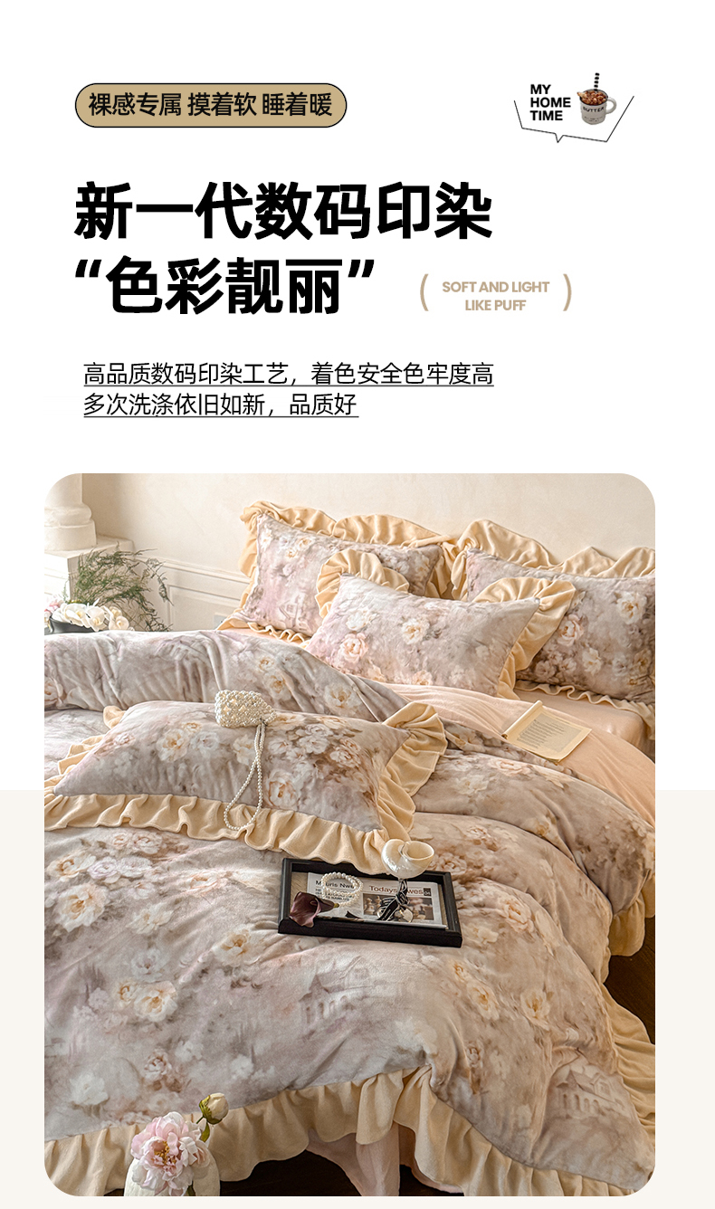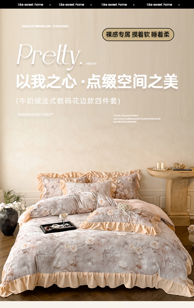 (总)首尔家纺 2025新款牛奶绒法式数码印花花边款四件套