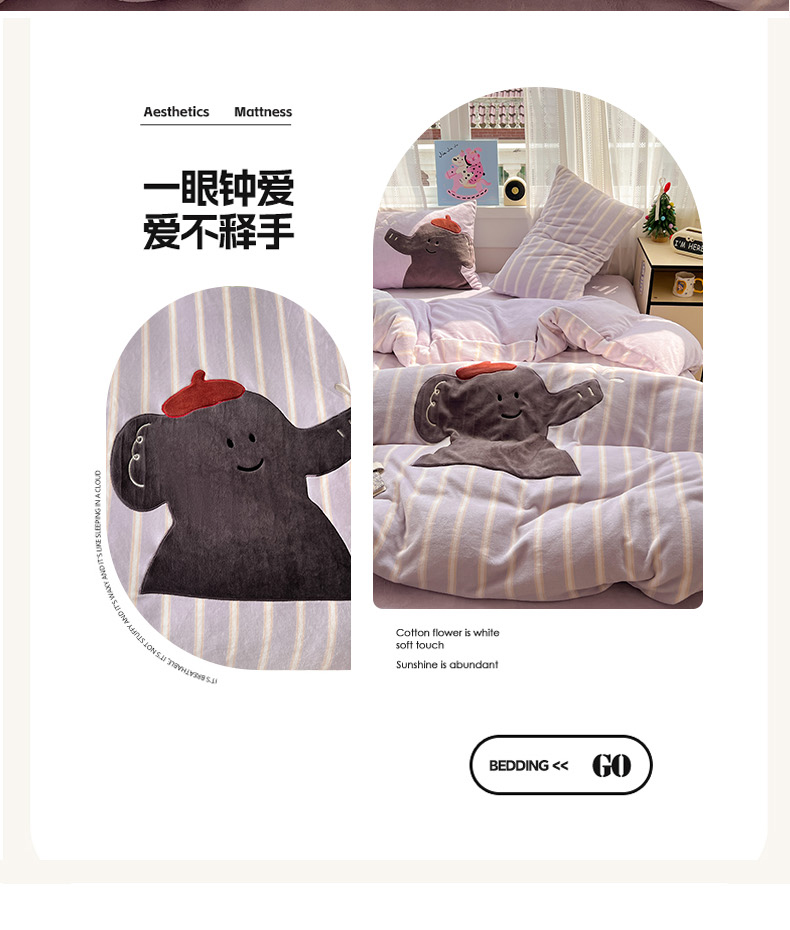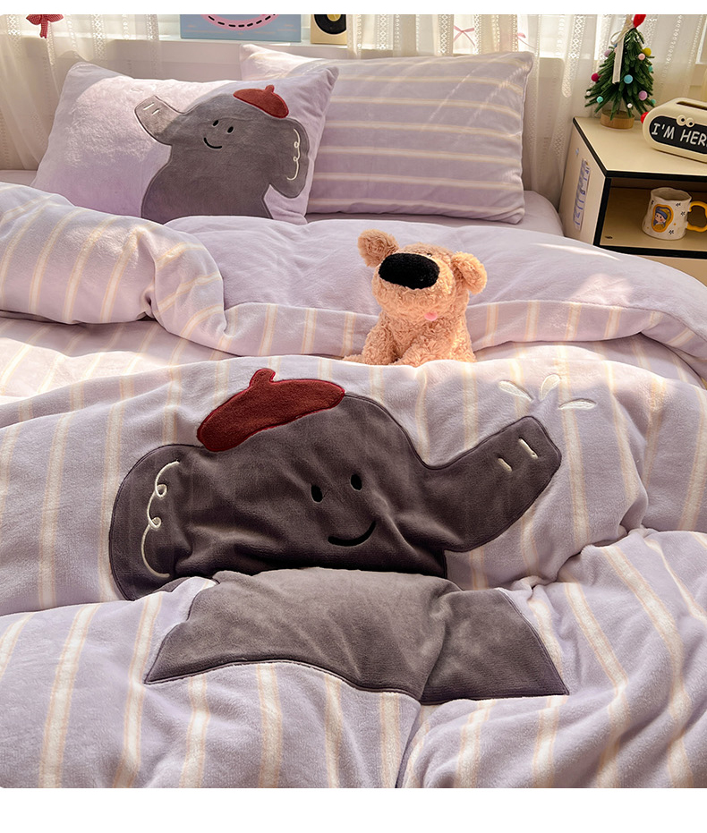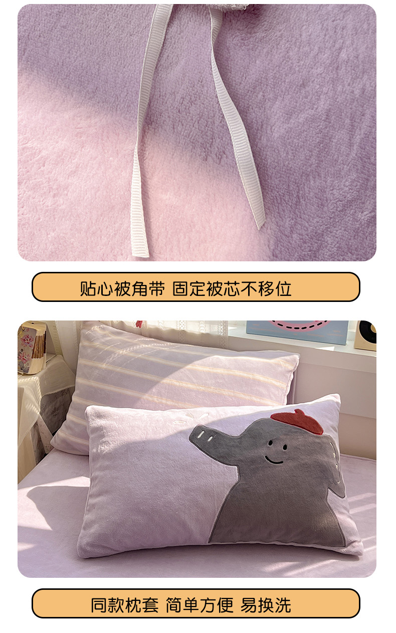 当前位置: 91家纺网 > 商品网购 > 床品套件 > 四件套 > 牛奶绒四件套 > 忆生活 2025新款秋冬高克重牛奶绒贴布绣四件套 条纹小象-紫