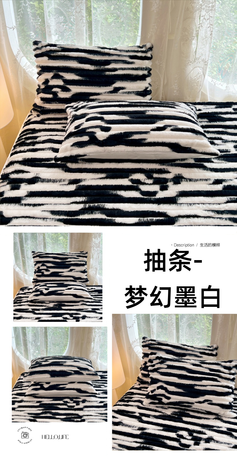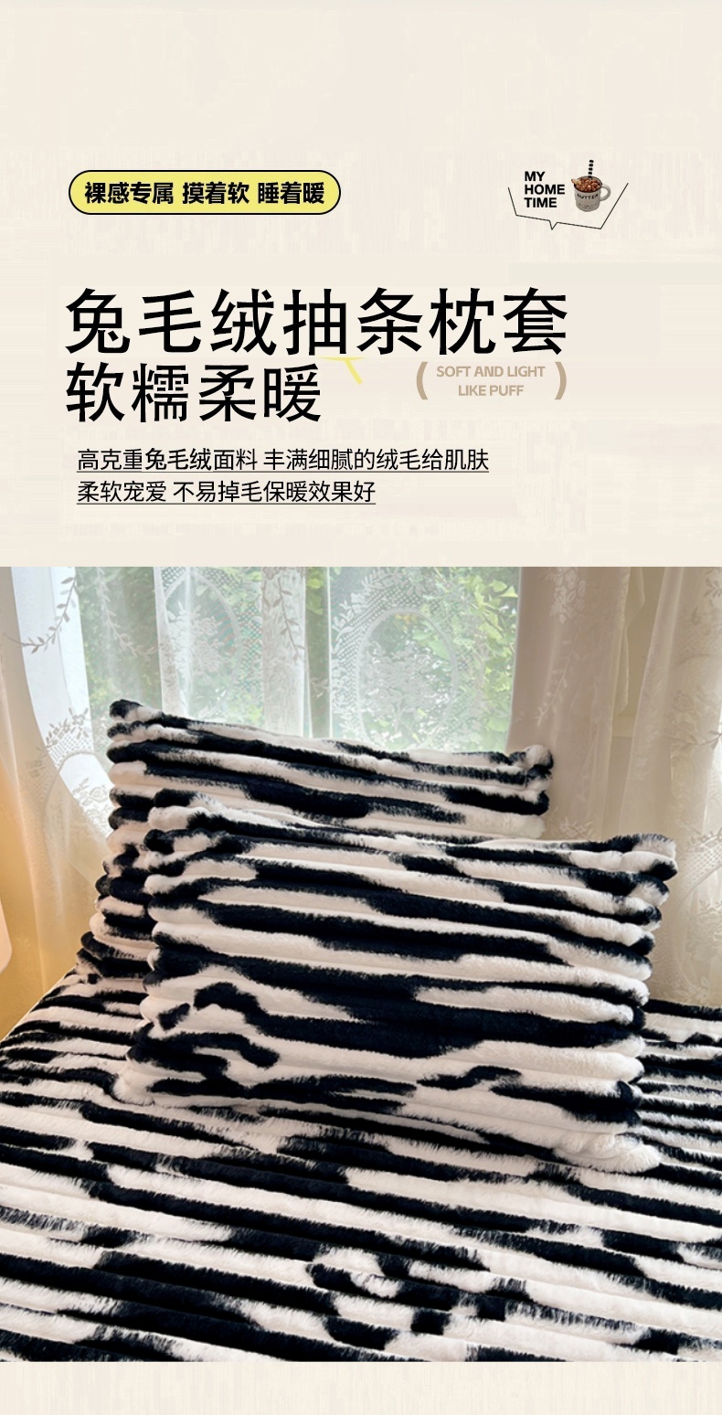 • 91家纺网 家纺一手货源 找家纺 梦舒羽 2025新款兔毛绒枕套宿舍枕芯套单人48x74cm法兰绒法莱绒枕头套-抽条 兔毛绒抽条-梦幻墨白
