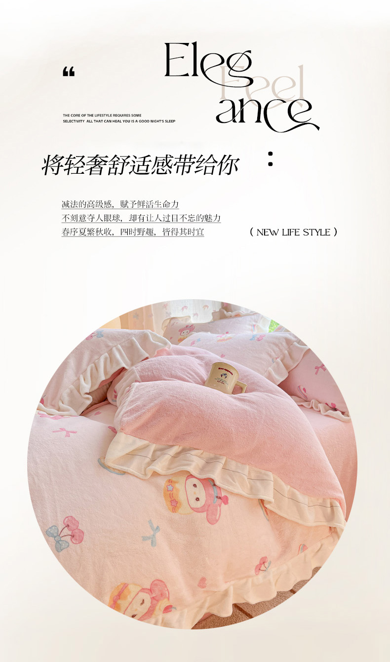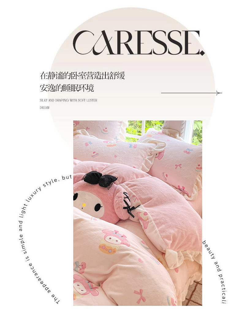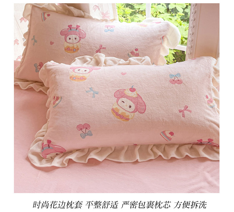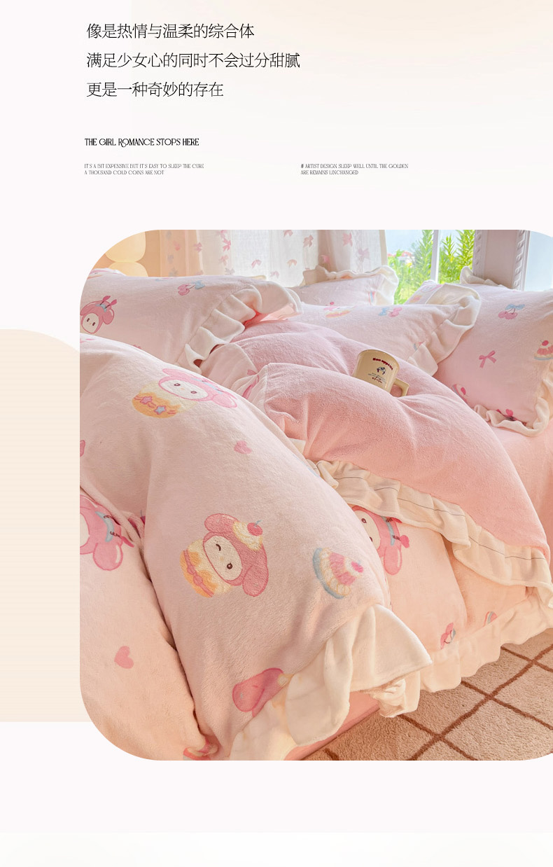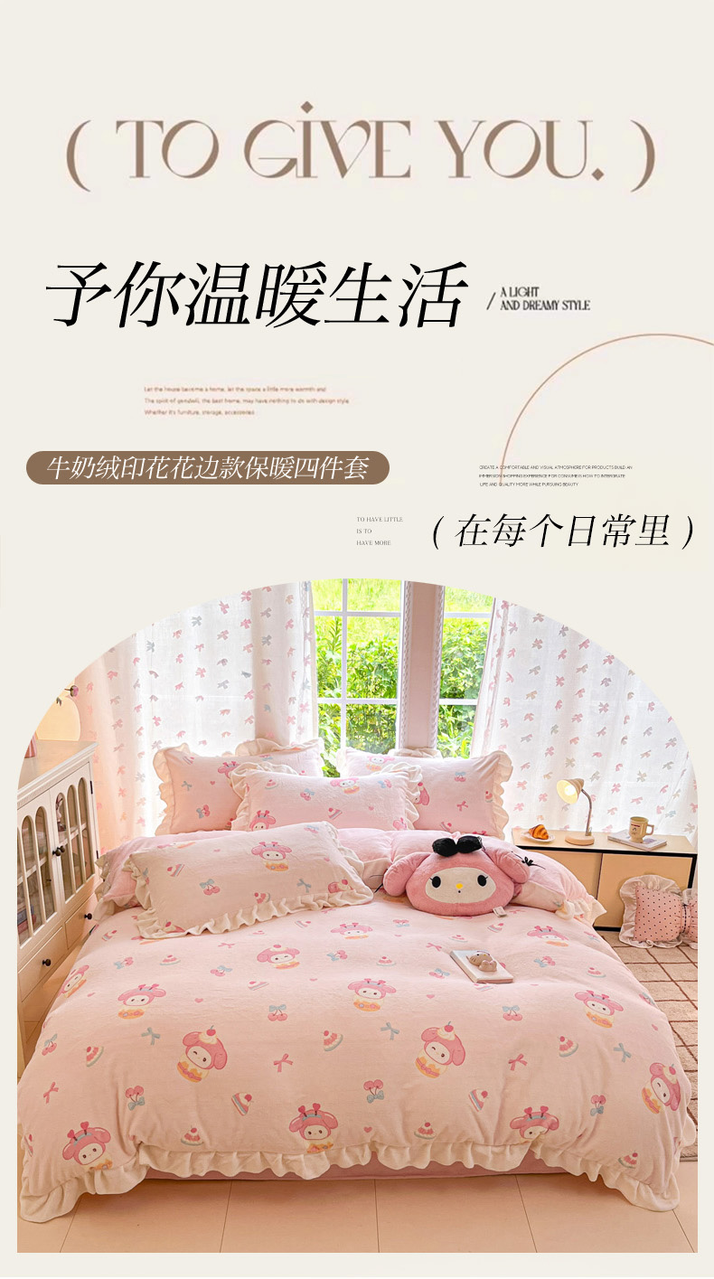 慕澄家居 2025新款花边款牛奶绒印花四件套 花边款-甜品美乐蒂