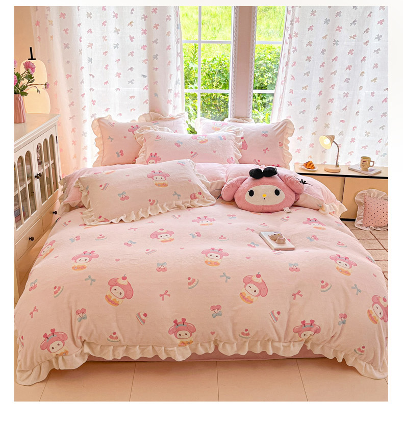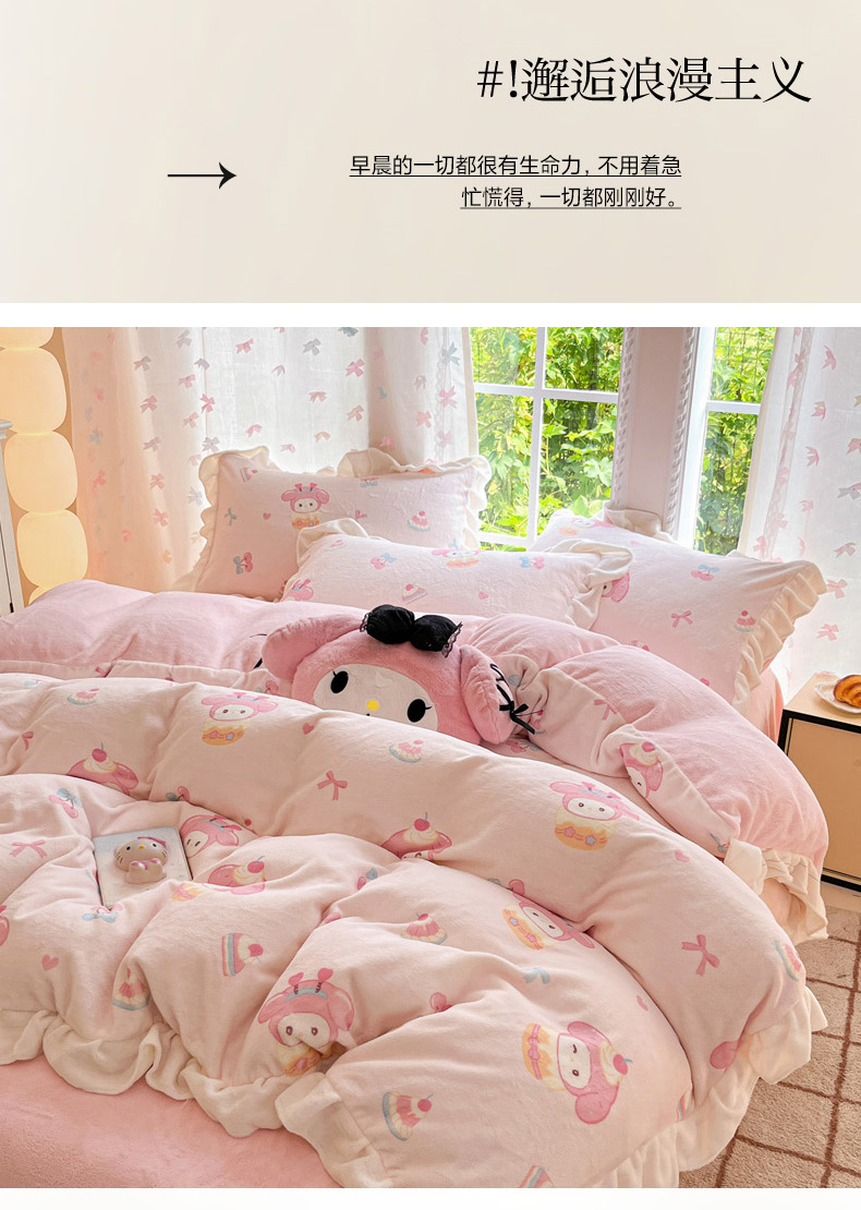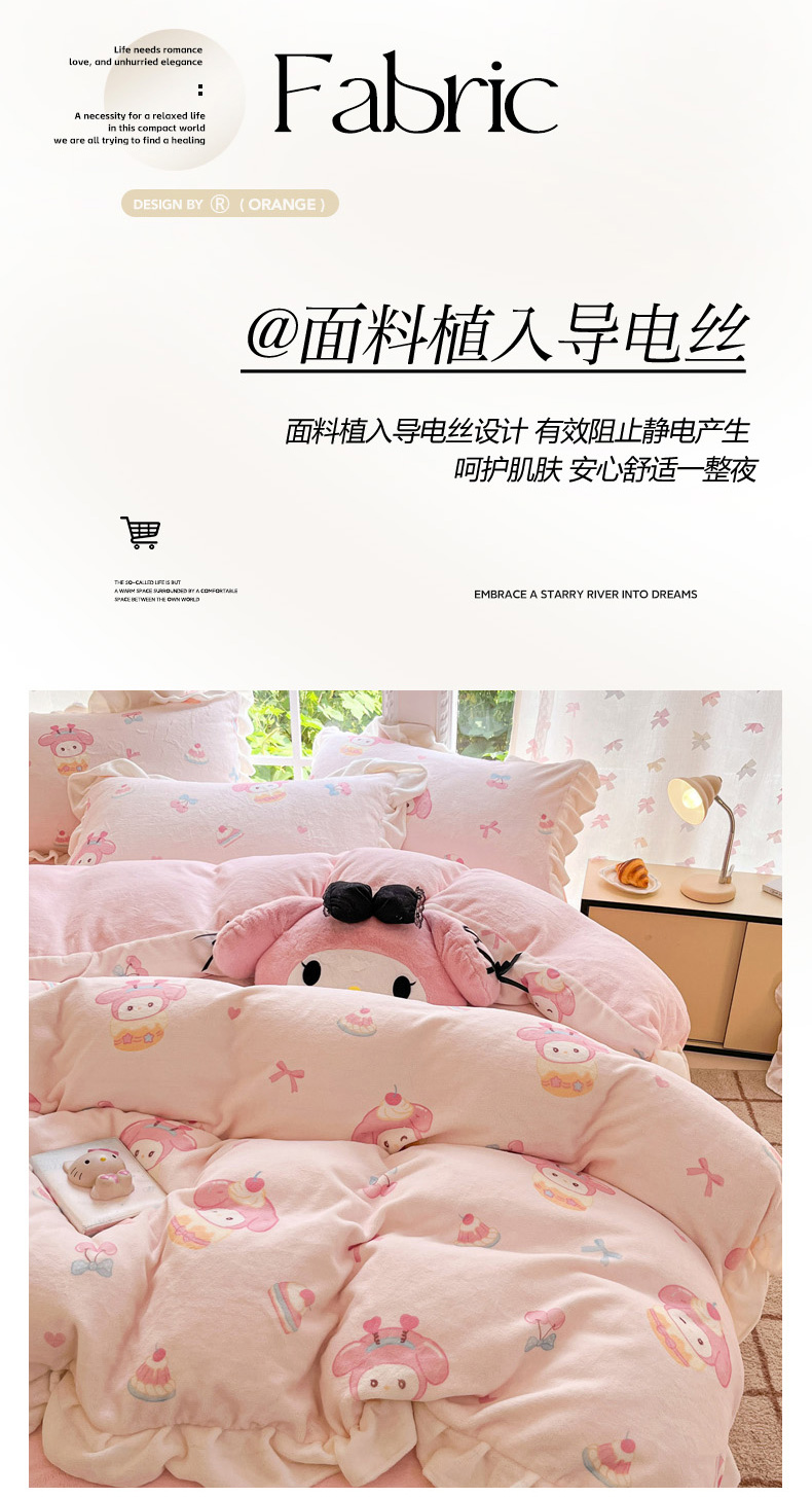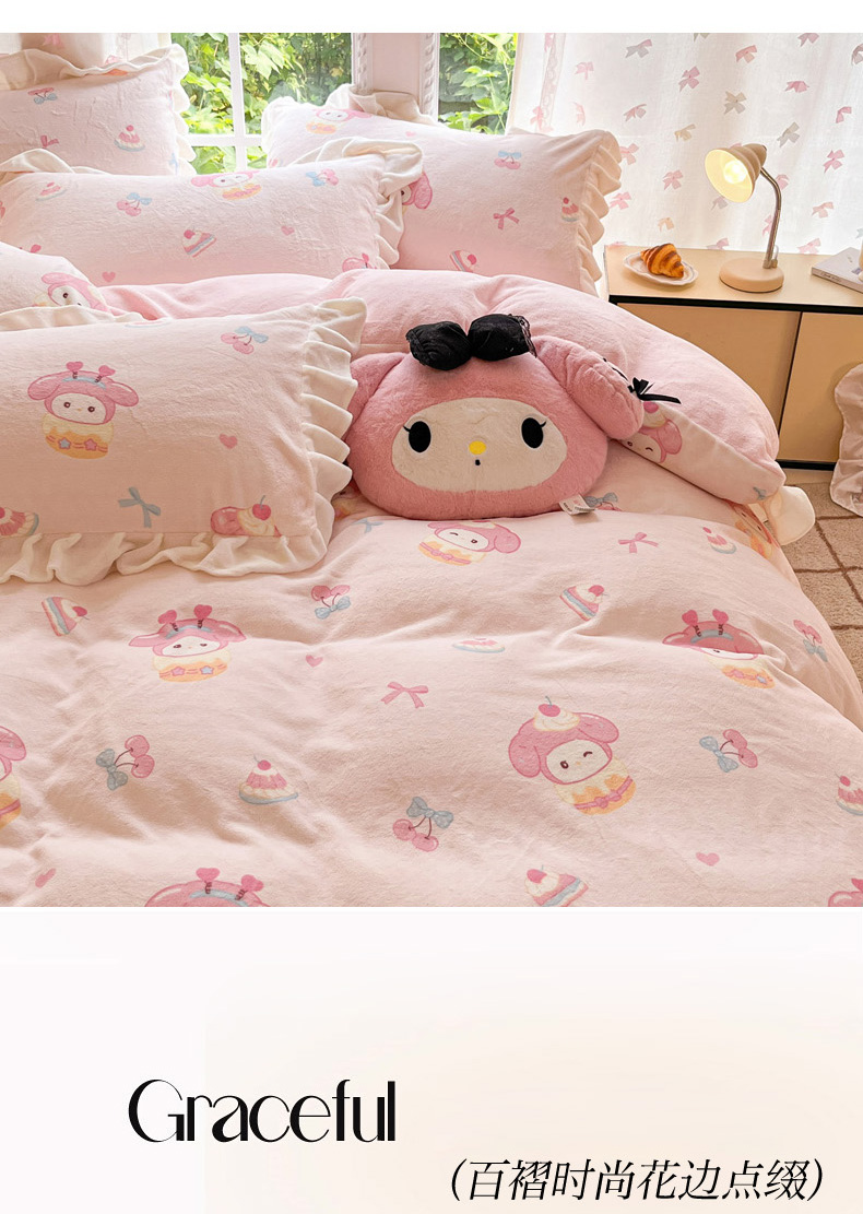 慕澄家居 2025新款花边款牛奶绒印花四件套 花边款-甜品美乐蒂