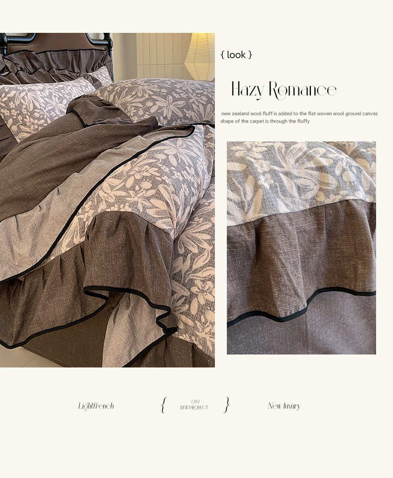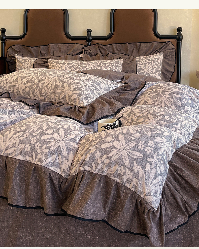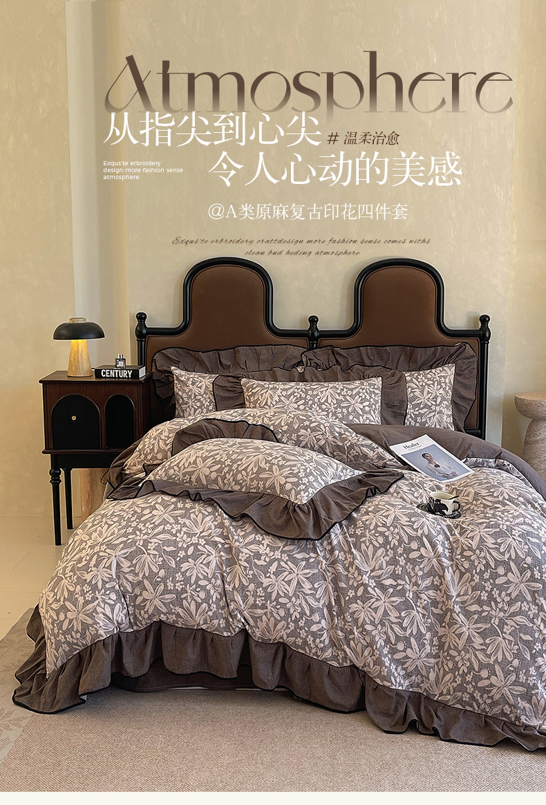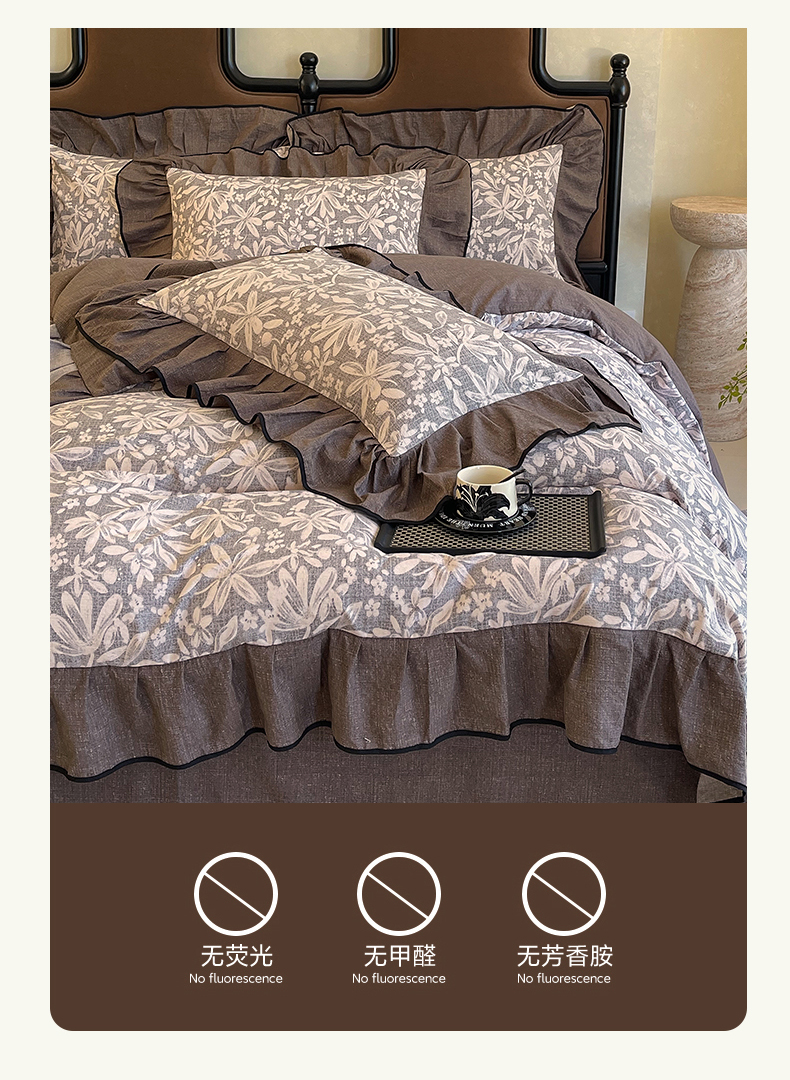 丝芙妮家居(原乐视家纺) 2025新款A类原麻复合印花花边四件套 相思岚