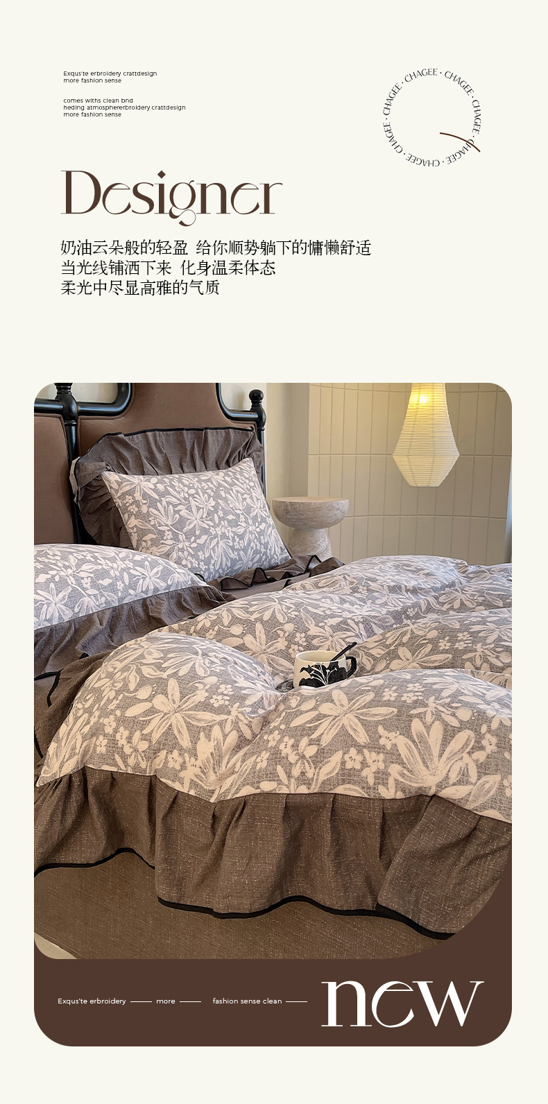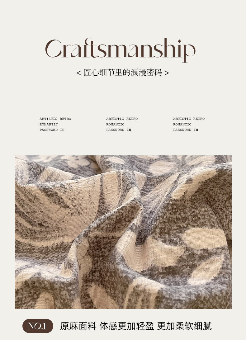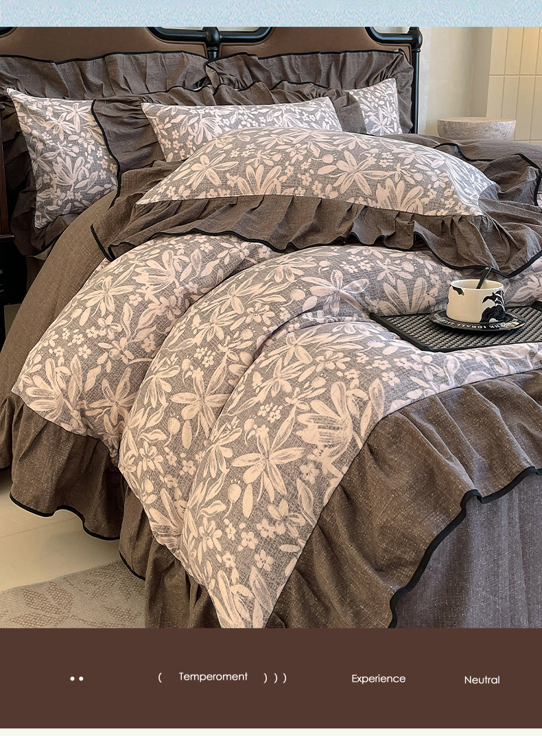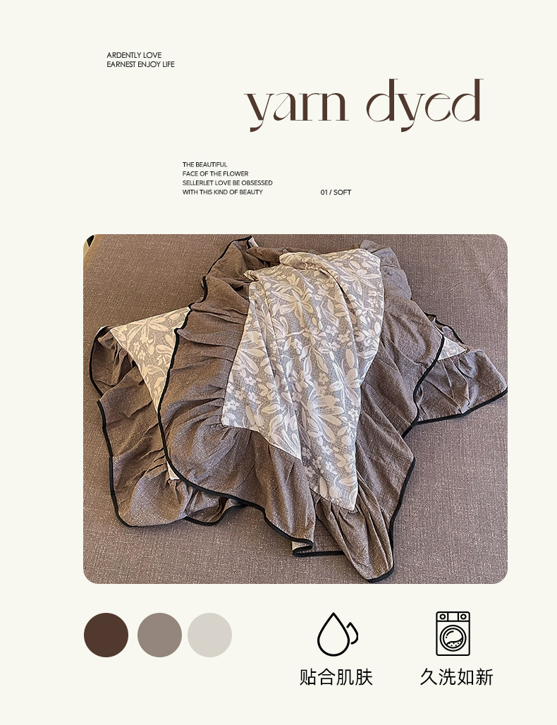丝芙妮家居(原乐视家纺) 2025新款A类原麻复合印花花边四件套 相思岚