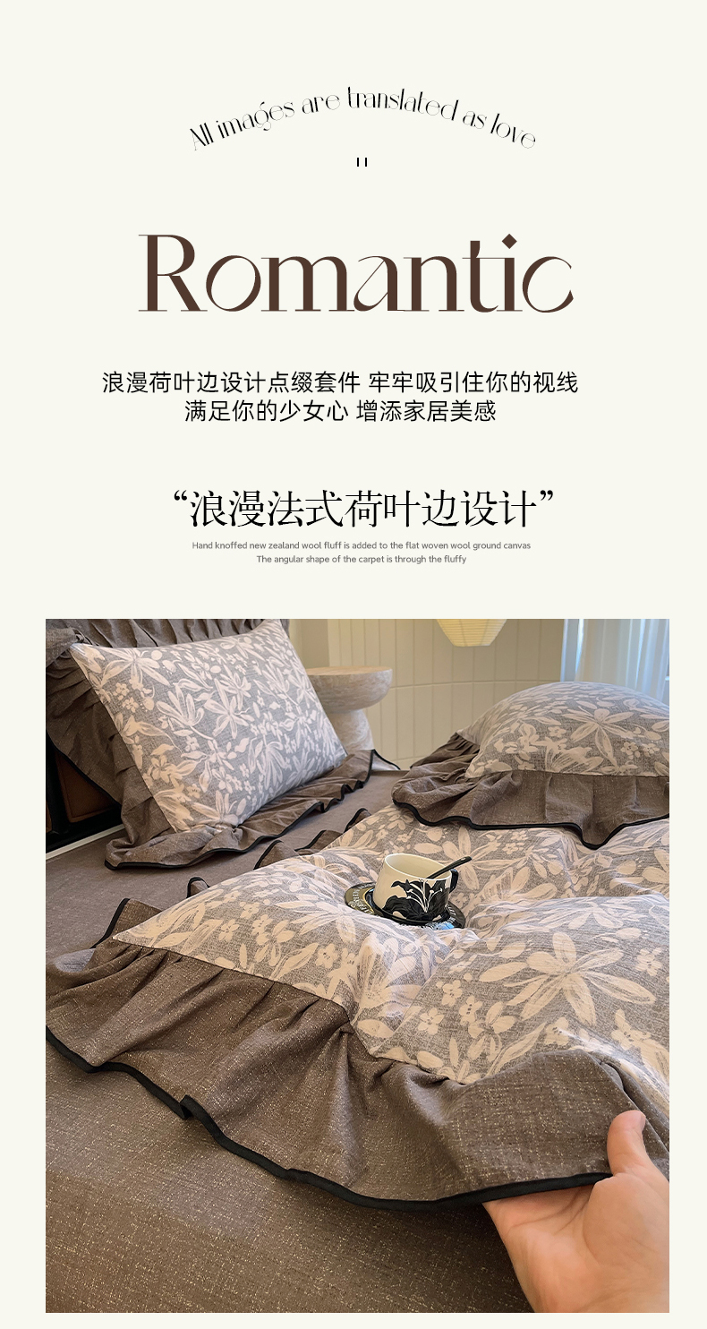 商品名称:丝芙妮家居(原乐视家纺) 2025新款A类原麻复合印花花边四件套 相思岚