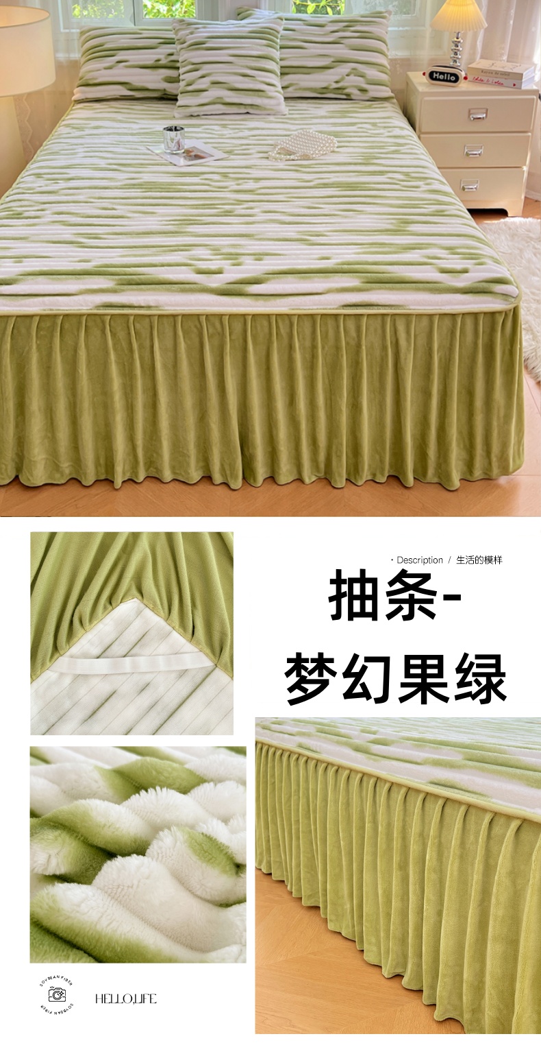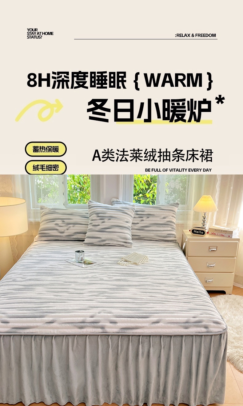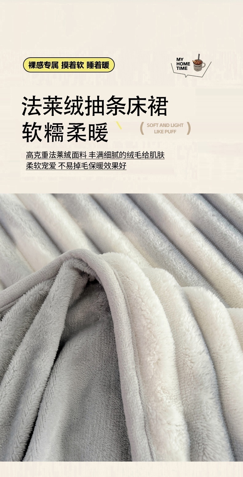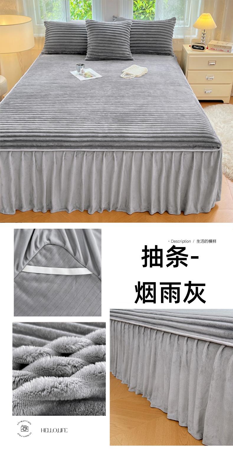 • 91家纺网 家纺一手货源 找家纺 圣比熊 2025新款法莱绒床裙法兰绒床垫保护罩牛奶绒兔毛绒床垫床单罩-抽条 法莱绒抽条-梦幻浅灰